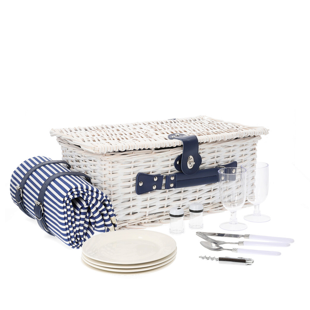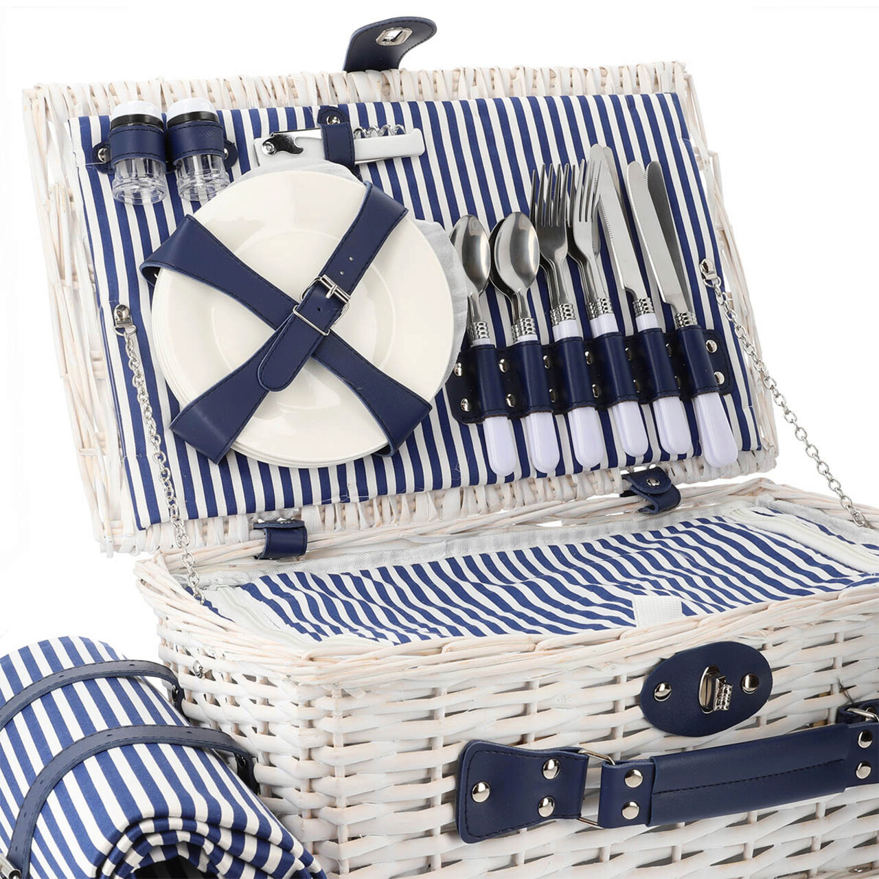 Cos de picnic 4 persoane Orlando, Homla, 46x30x20 cm, cu patura de picnic 130x150 cm, alb