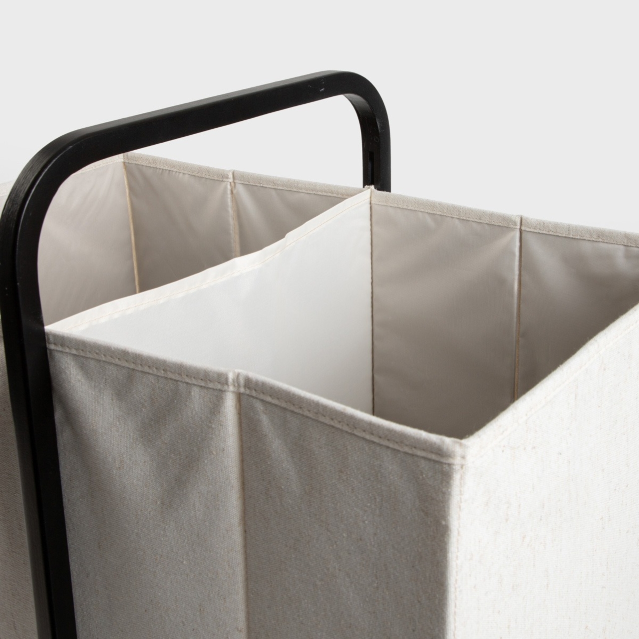 Cos de rufe cu 2 compartimente Davey, Homla, 50x36x65 cm, poliester/in/bambus, alb/negru