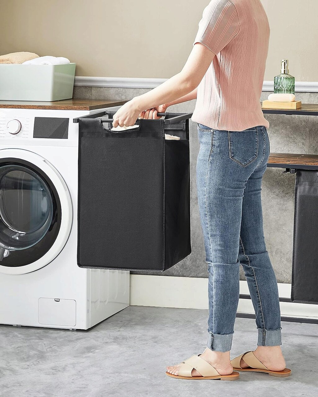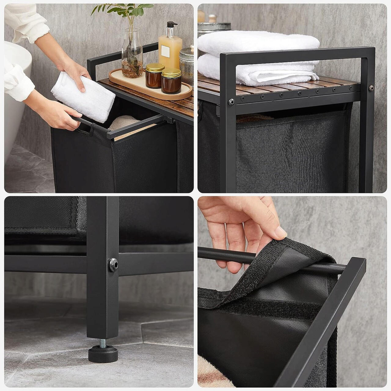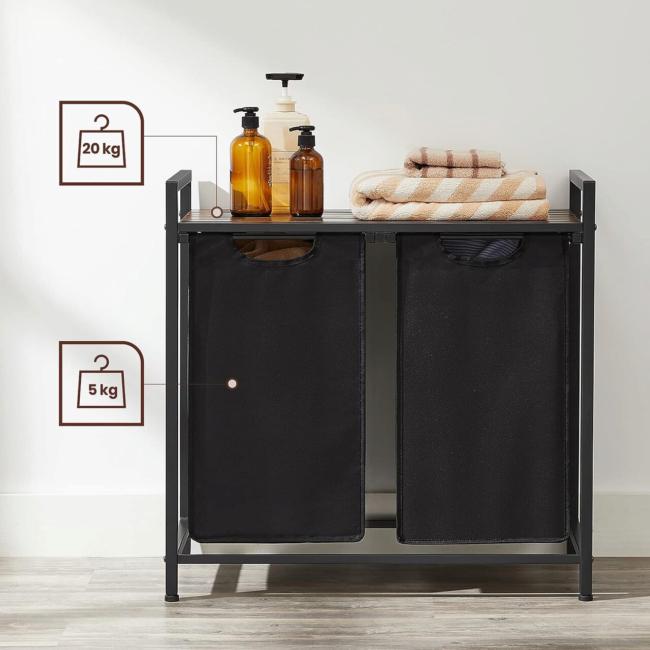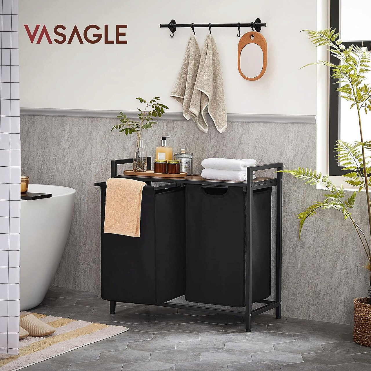Cos de rufe cu 2 compartimente si 1 raft Vasagle, 73 x 33 x 72 cm, 2 x 46 L, otel/tesatura Oxford, negru