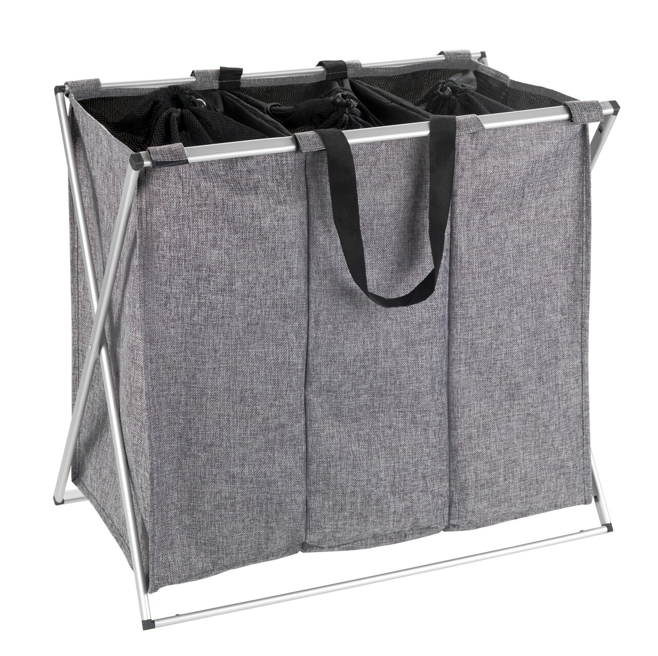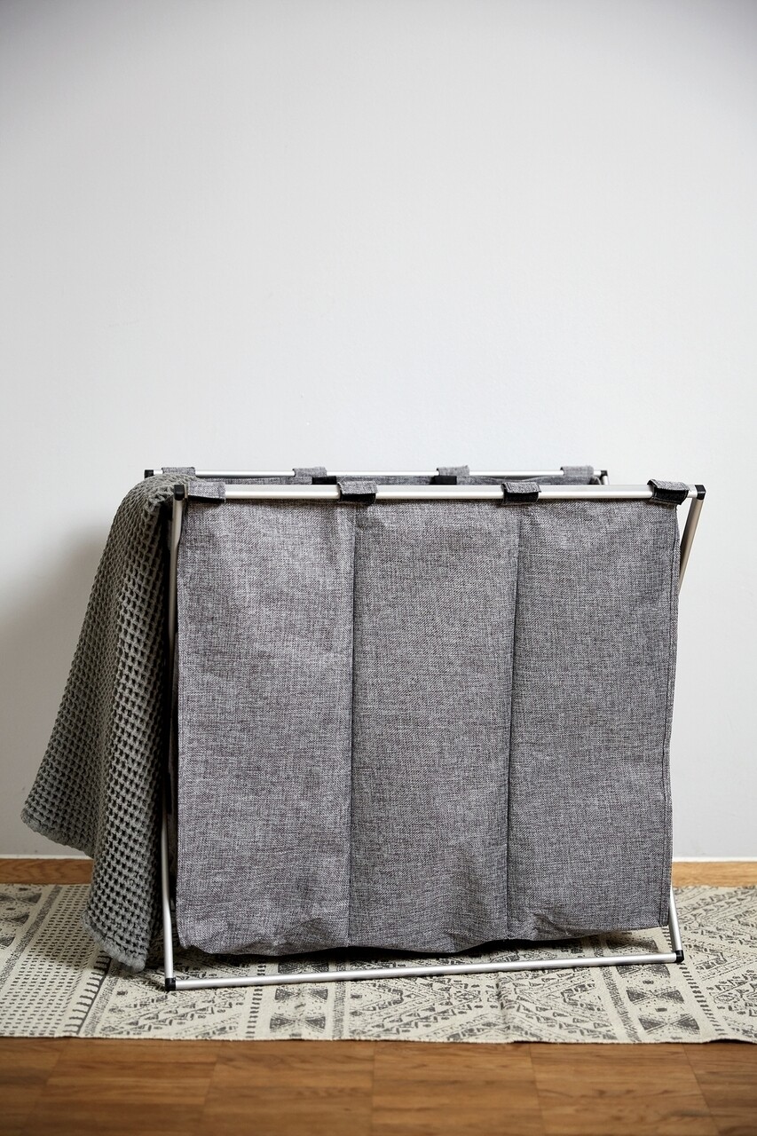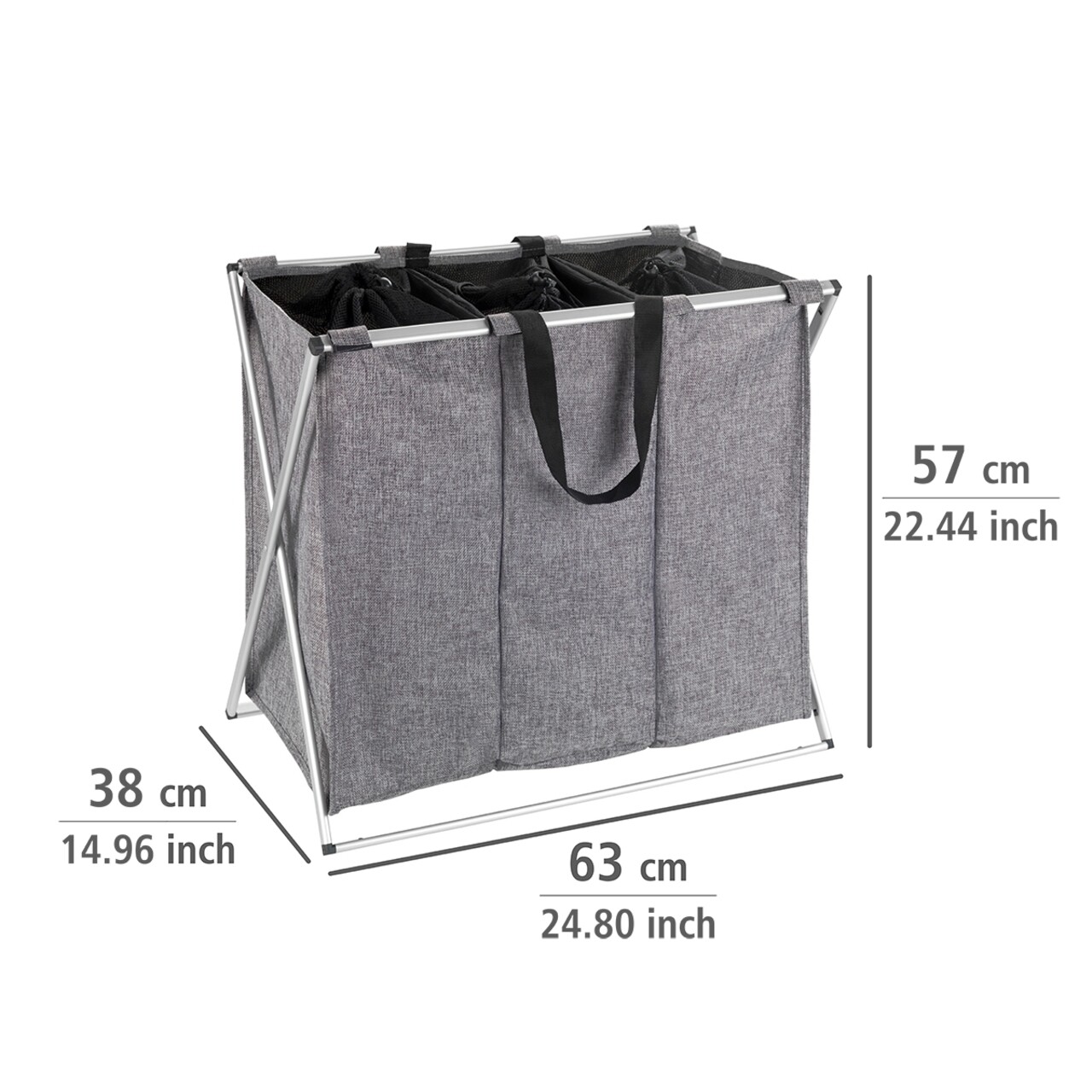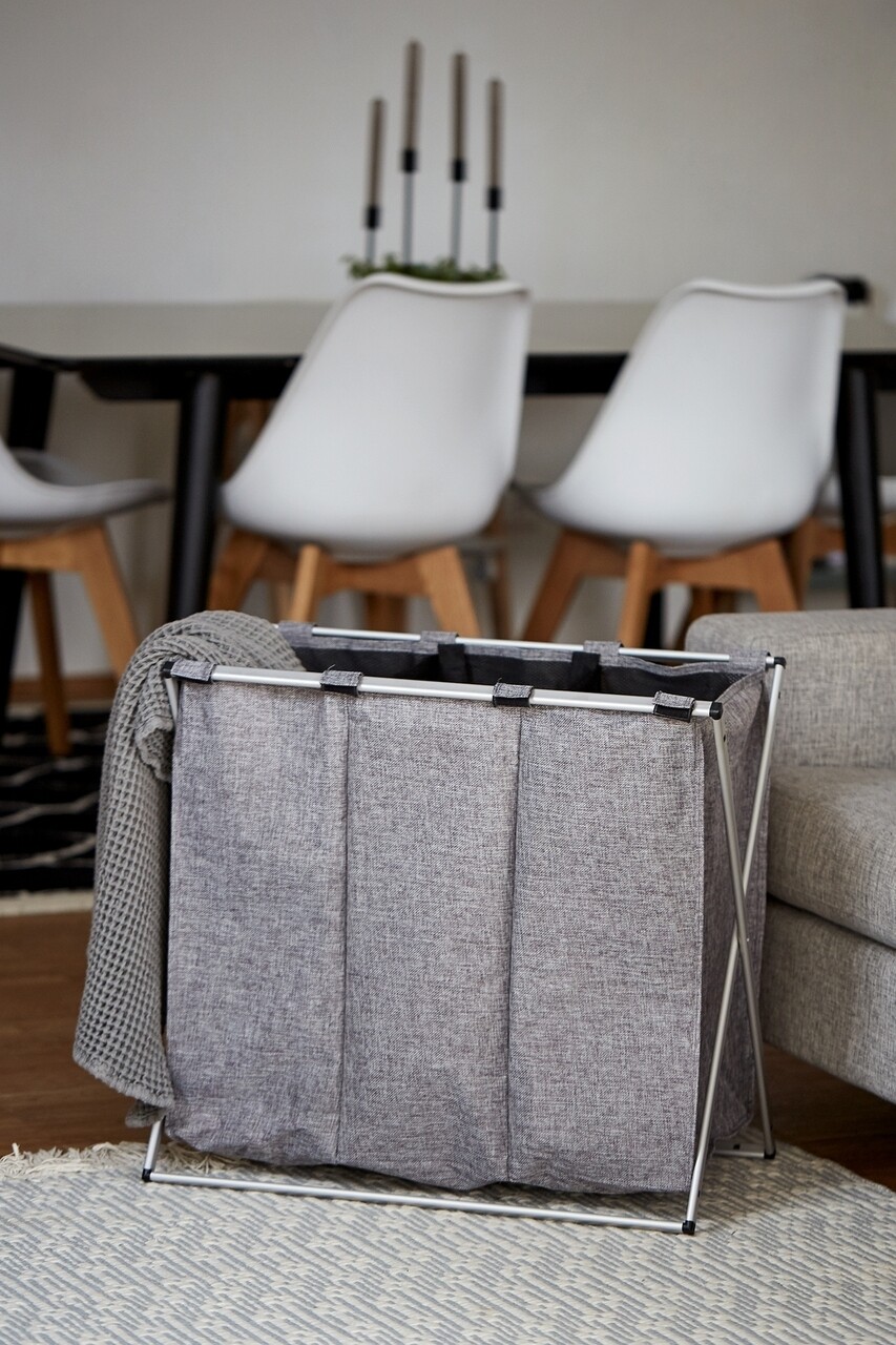 Cos de rufe cu 3 compartimente, Wenko, Trio, 130 L, 63 x 57 x 38 cm, poliester/aluminiu, gri