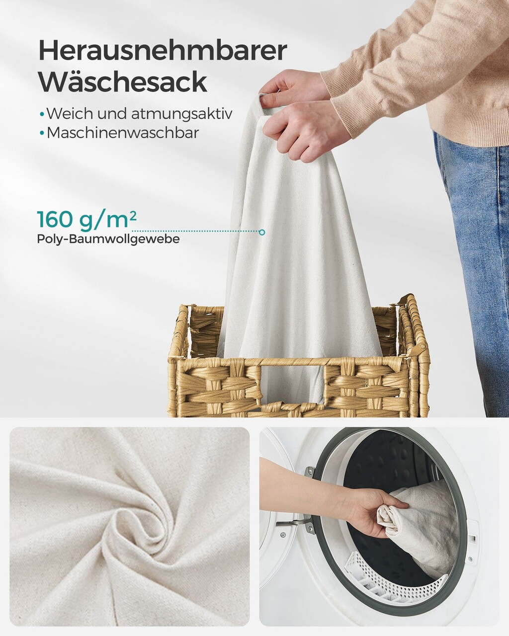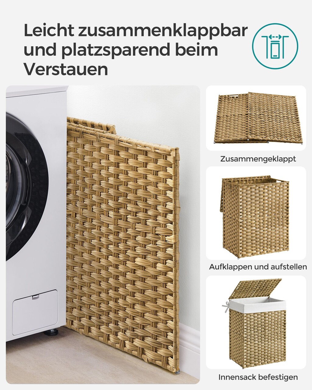 Cos de rufe, Songmics, 46x33x60 cm, 90 L, ratan sintetic/fier/bumbac, maro
