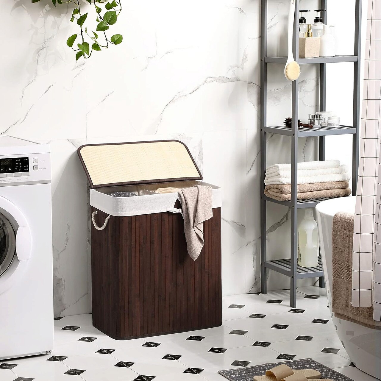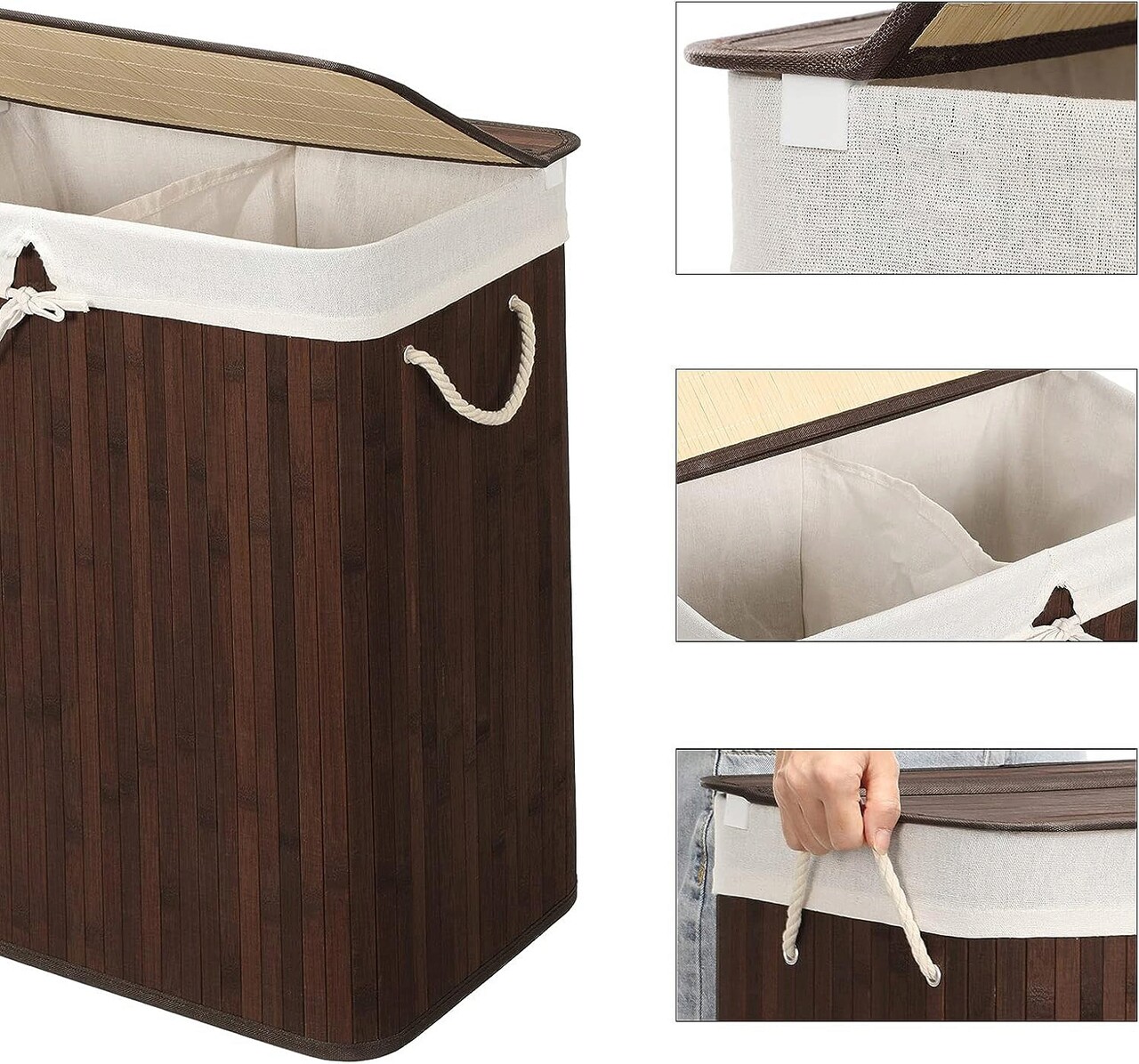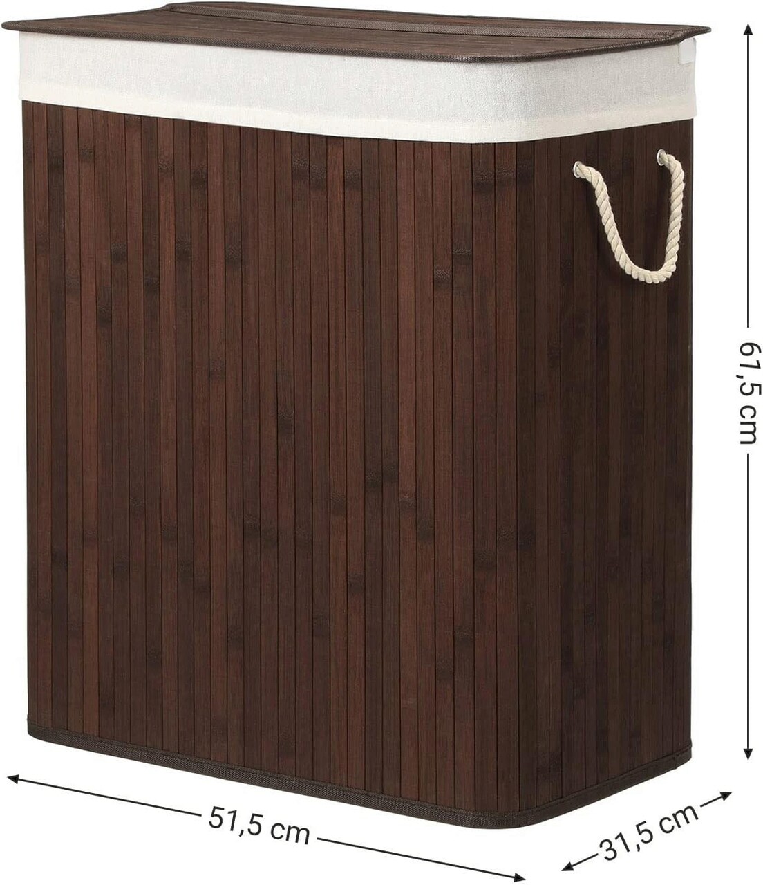 Cos de rufe, Songmics, 51.5 x 31.5 x 61.5 cm, 100 L, 2 compartimente, bambus, maro