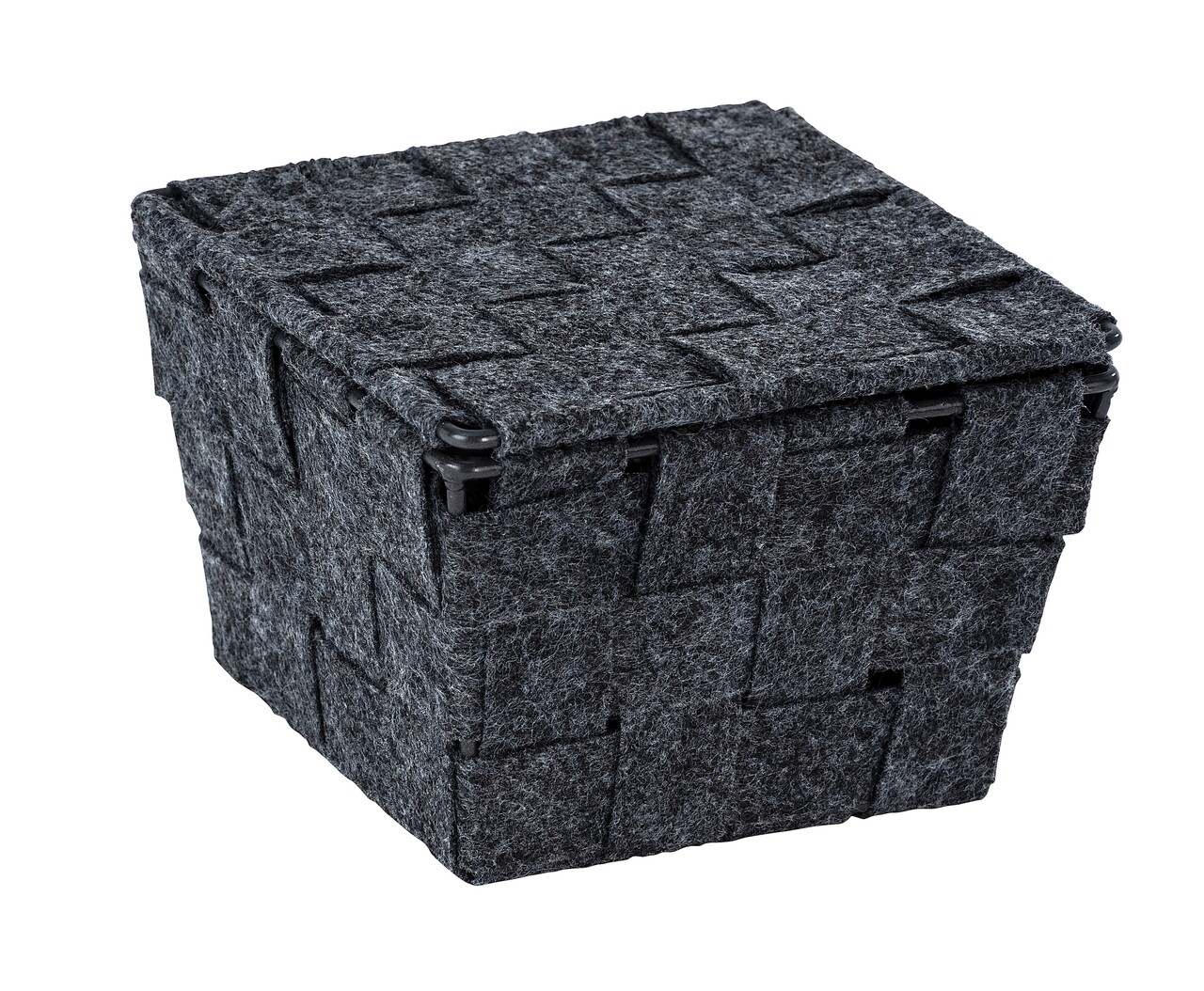 Cos depozitare cu capac, Adria Feltro square, 14 x 9.4 x 14 cm, poliester, antracit
