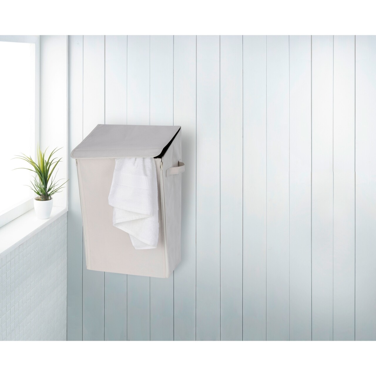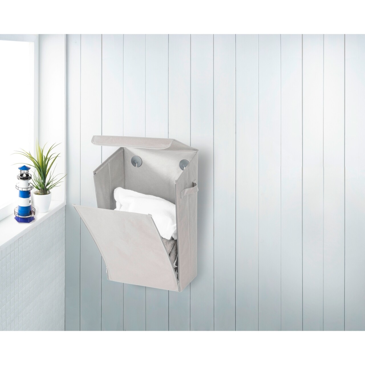 Cosul de rufe WENKO Beige poate fi fixat pe perete pentru a economisi spatiu. Poate fi scos din suportul de prindere si pozitionat vertical pe podea. Are un magnet integrat in capac ceea ce ii permite sa fie intotdeauna inchis. In partile laterale este echipat cu fermoar. Se poate monta orice suprafata neteda.