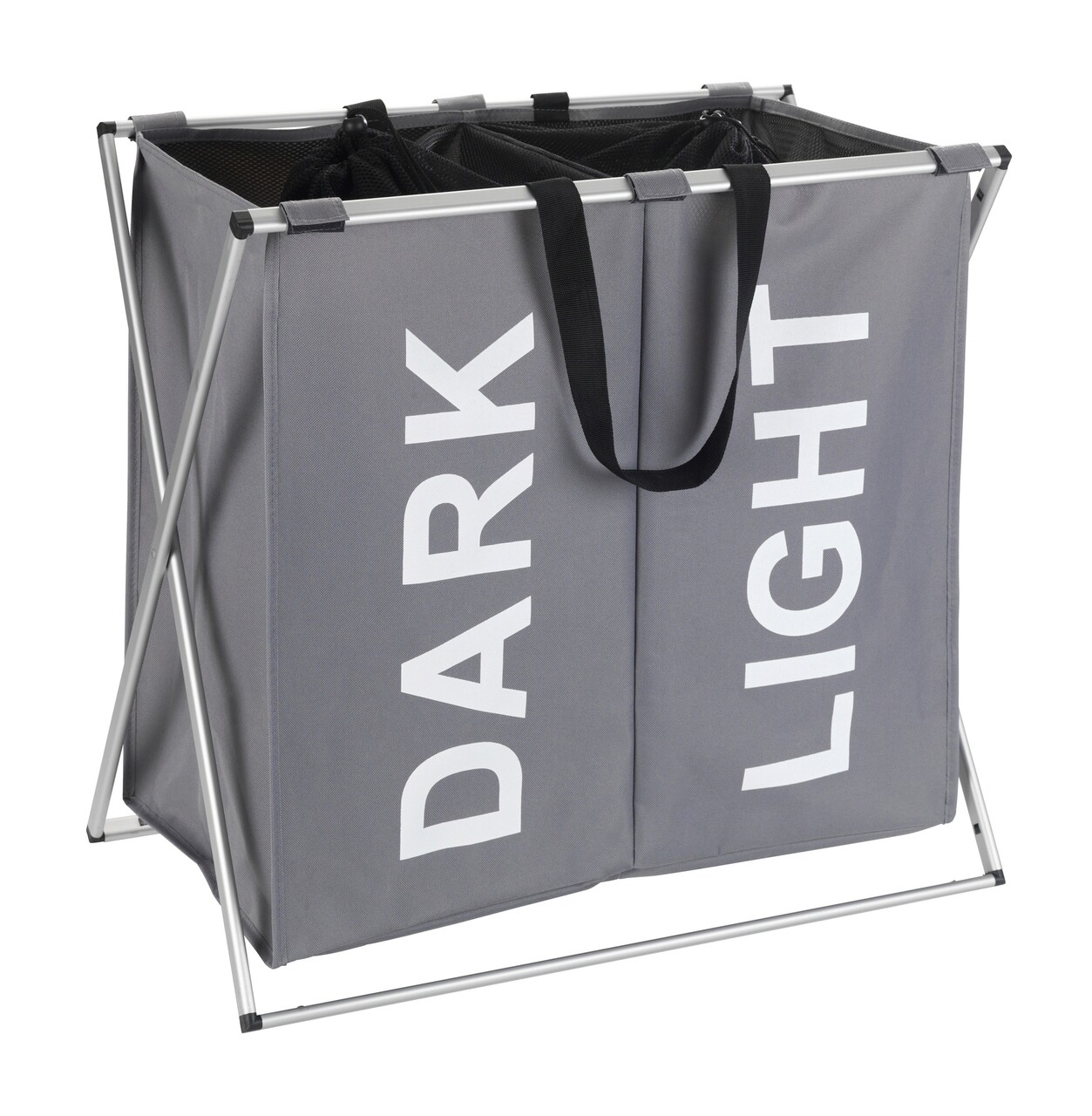 Cos pentru rufe cu 2 compartimente, Wenko, Duo Grey, 59 x 38 x 57 cm, 120 L, poliester/aluminiu, gri
