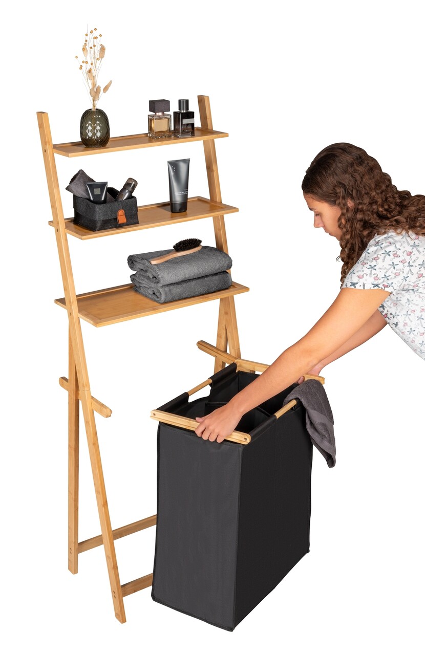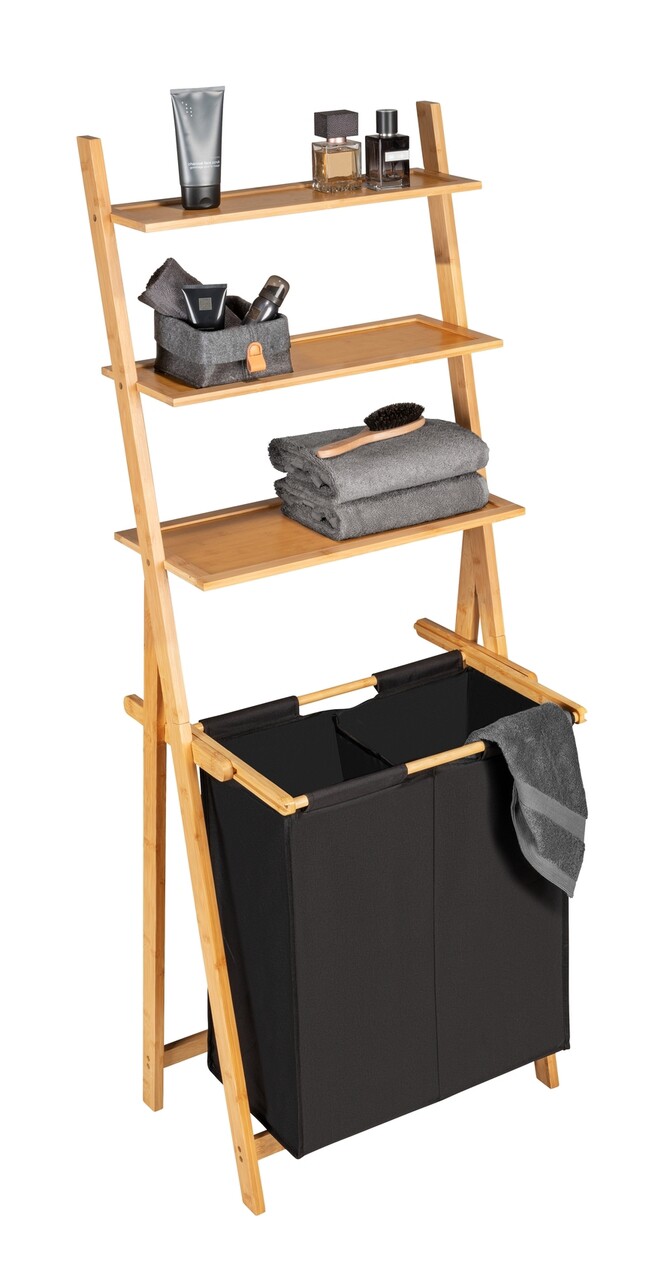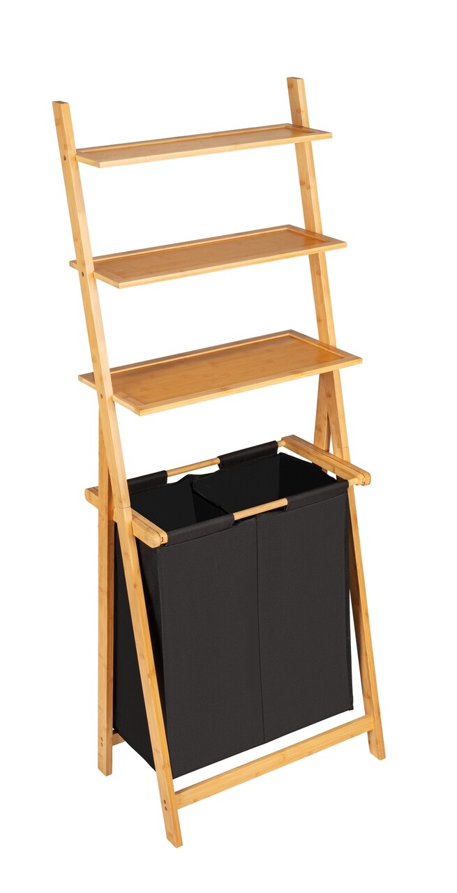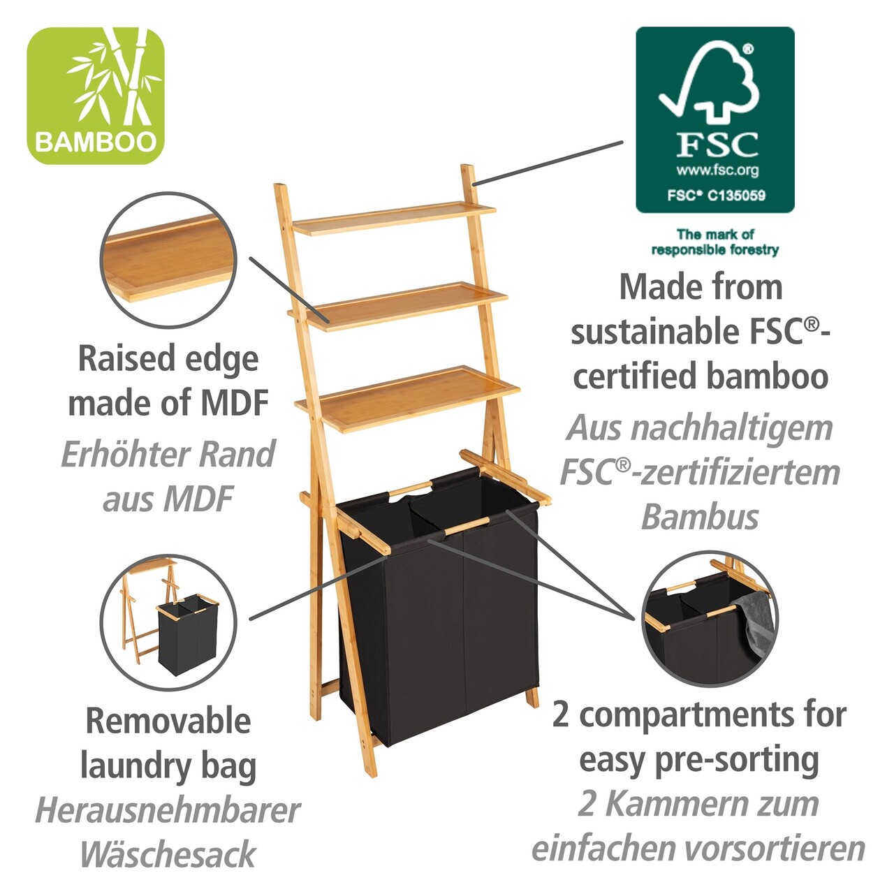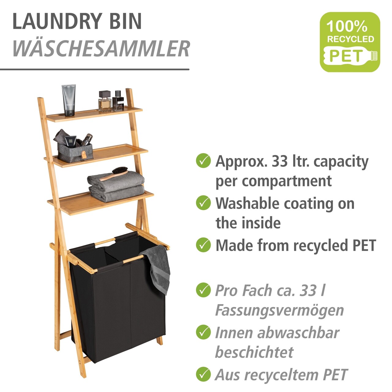 Cos pentru rufe Ecori, Wenko, 57.5x35x152 cm, bambus/poliester/polietilena, negru/natur
