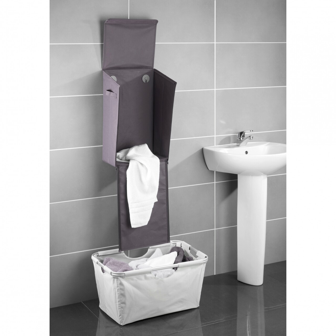 Cos pentru rufe Grey, Wenko, cu sistem de prindere, 30 l, poliamida/polipropilena, gri