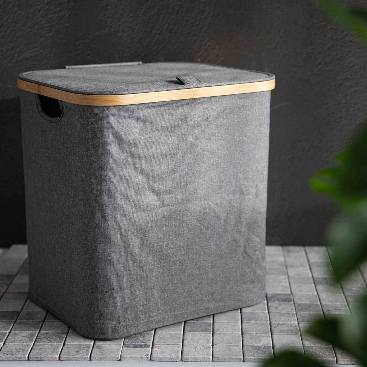 Cos pentru rufe Nellie, Homla, 40.5x32x42 cm, poliester/bambus, gri