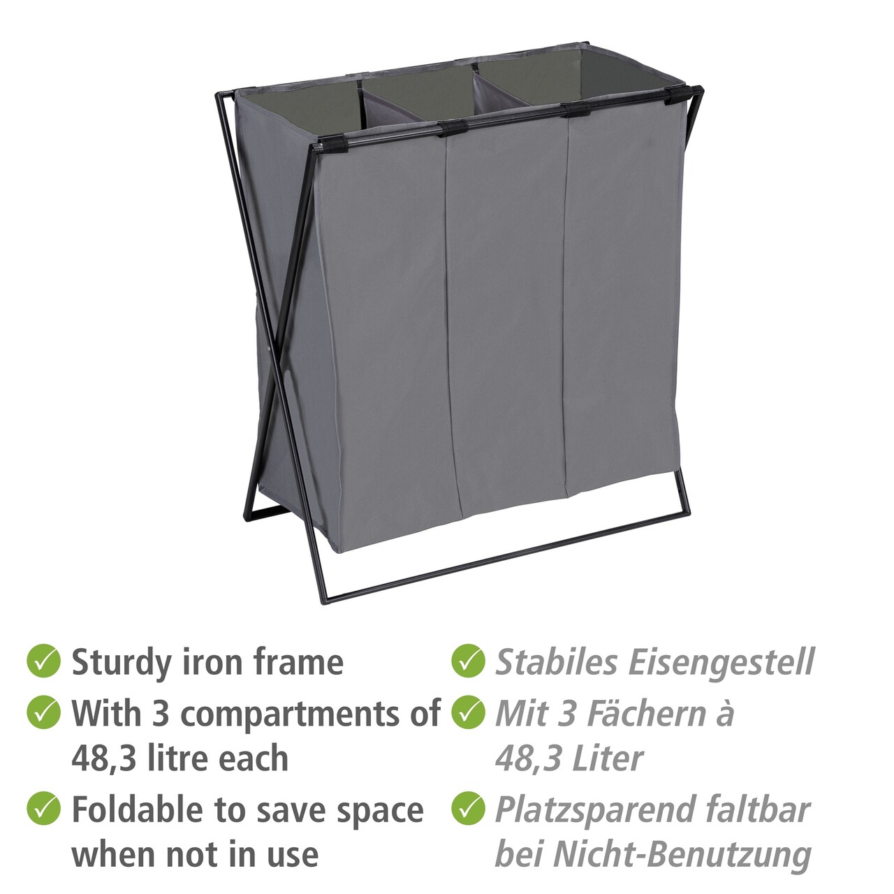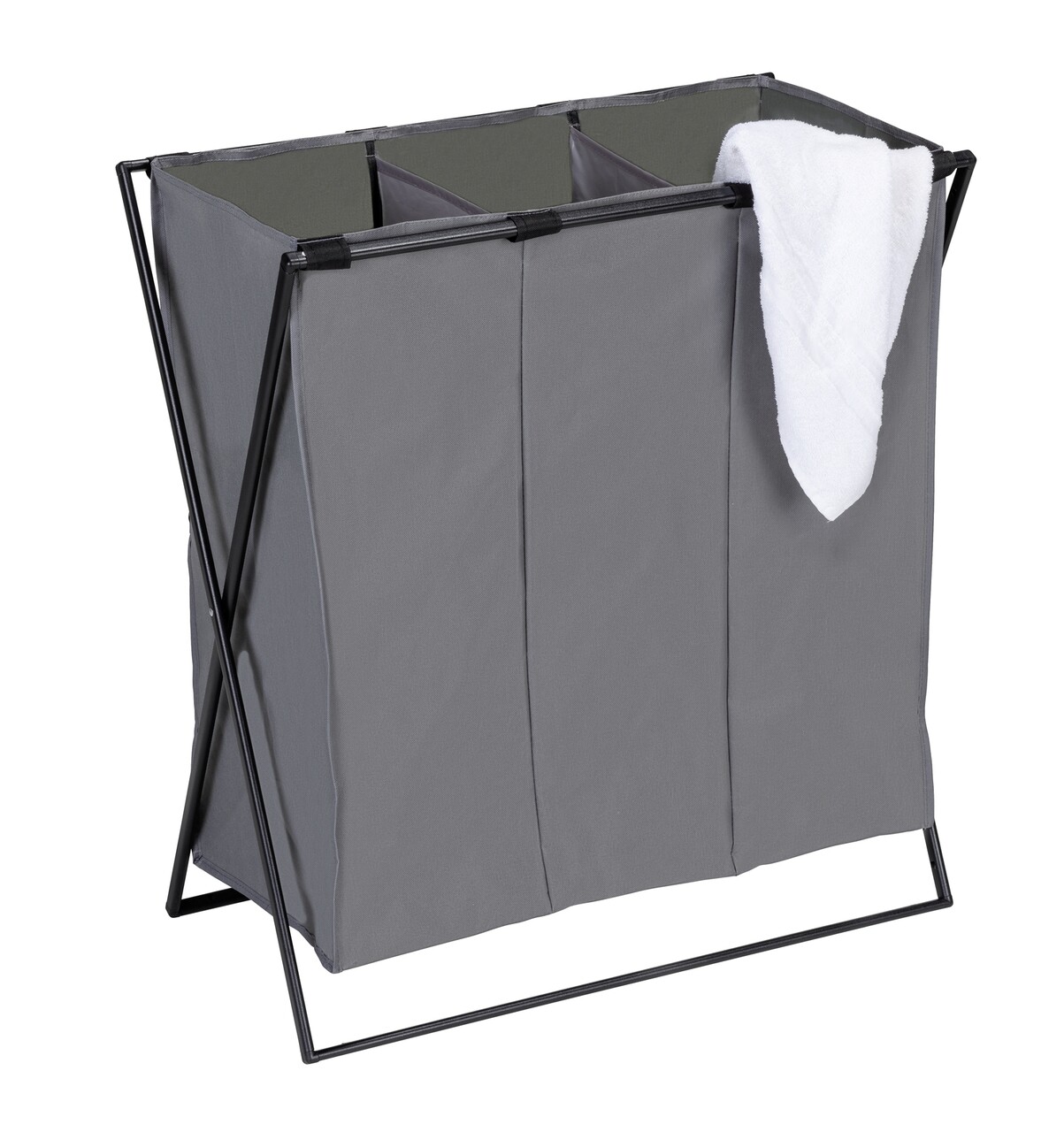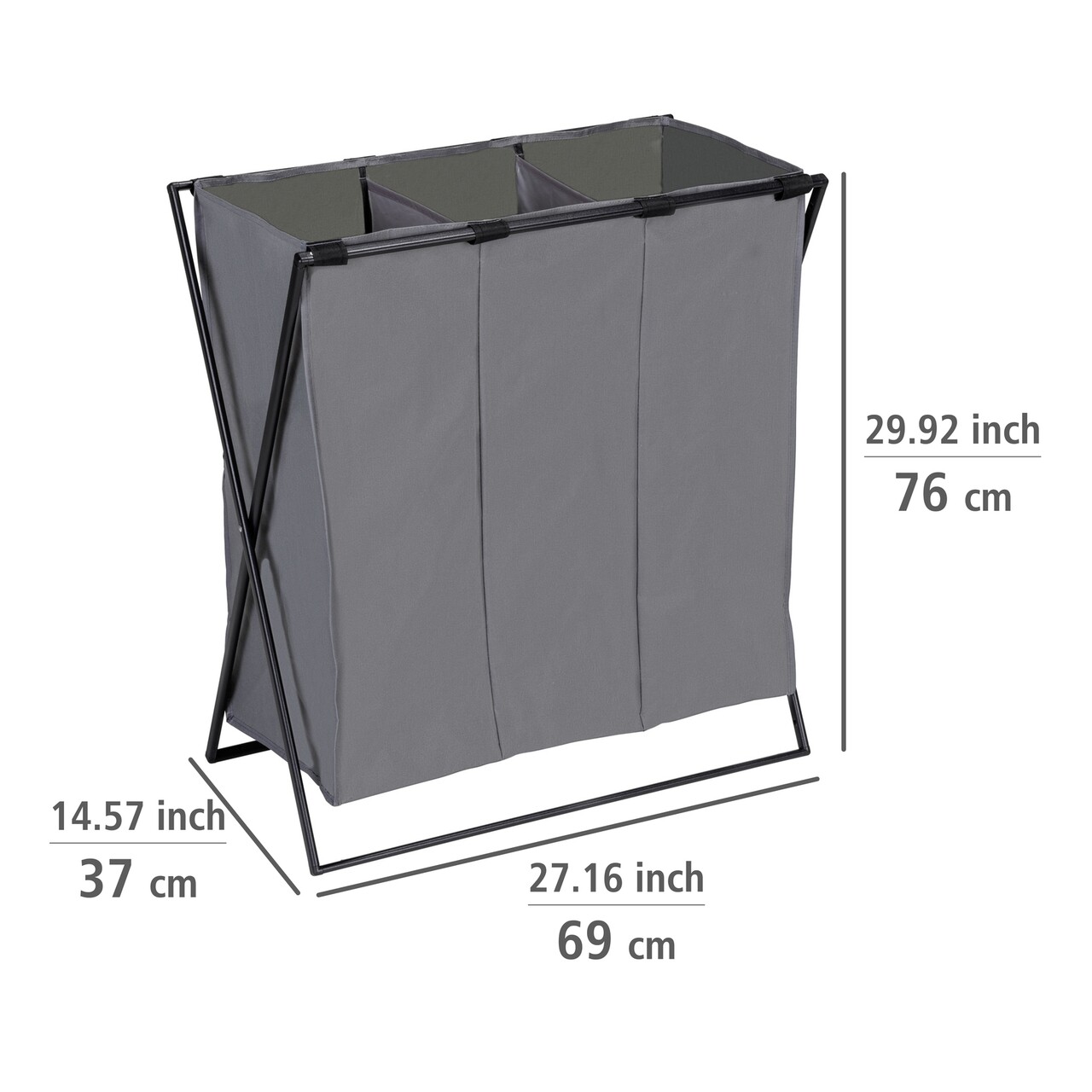 Cos pentru rufe Trio XL, Wenko, 69x37x76 cm, poliester/polietilena, gri/negru