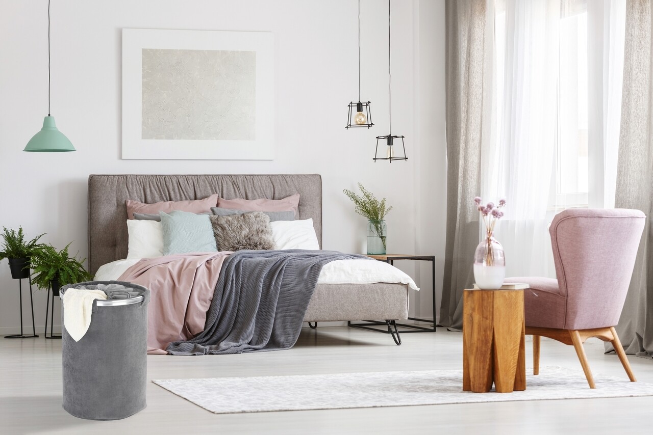 Cos pentru rufe, Wenko, Cordoba, 68 L, poliester/aluminiu, gri