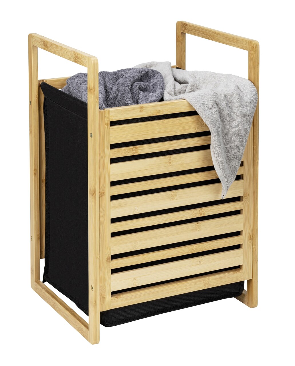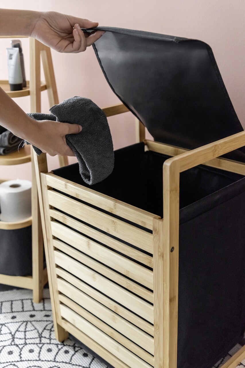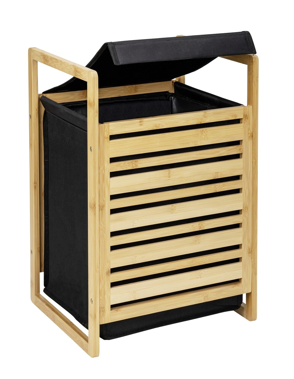 Cos pentru rufe, Wenko, Ecori, 40 x 35 x 60 cm, 47 L, bambus/poliester/polietilena, natur/negru