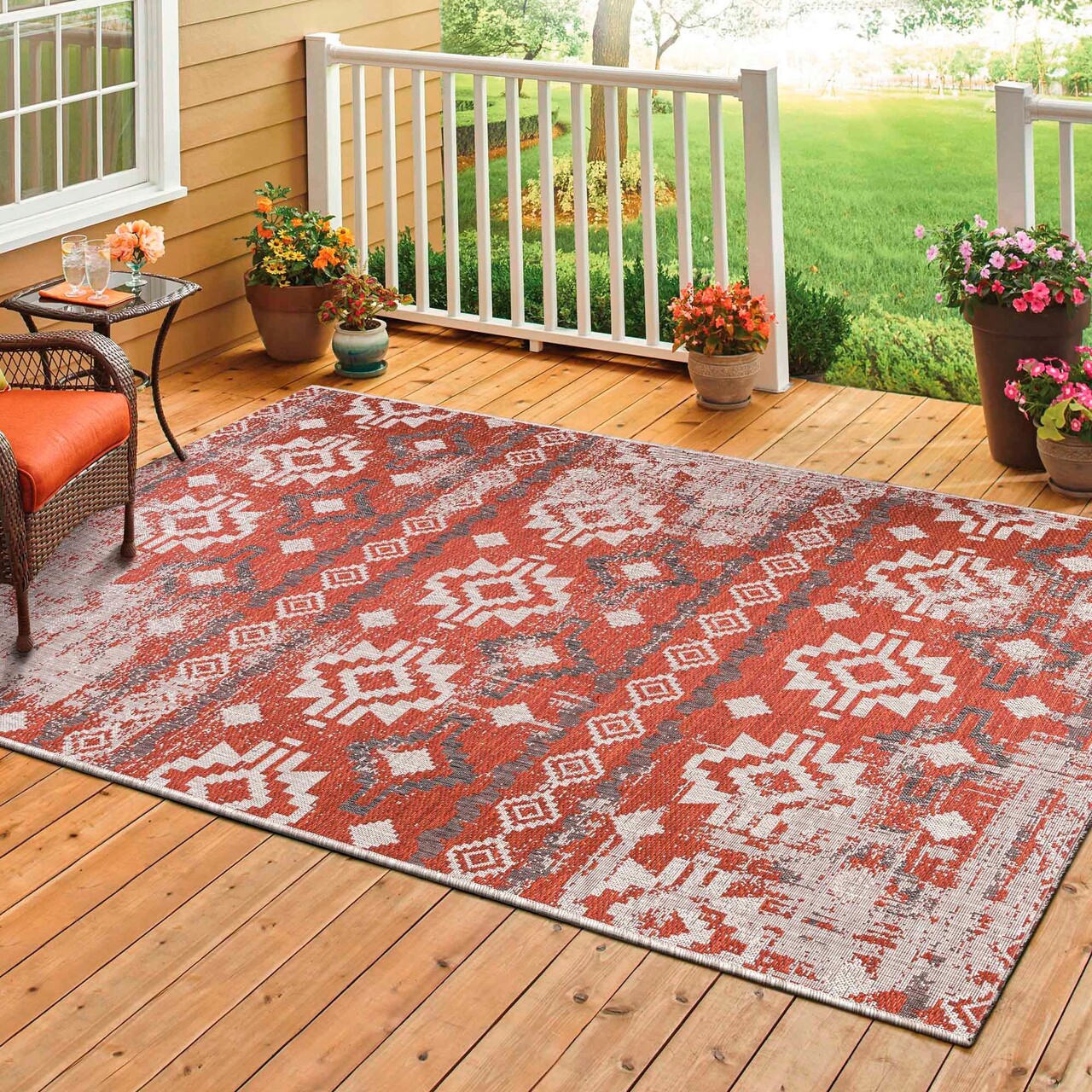 Covor, 02006A, 160x230 cm, Polipropilena, Gri/Roșu