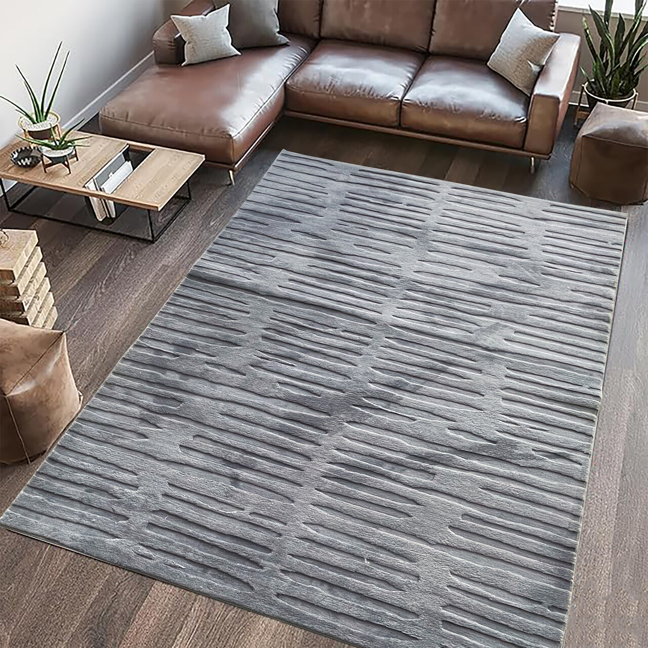 Covor 3D cu model in relief, Oliver, Heinner, 200x300 cm, poliester, gri