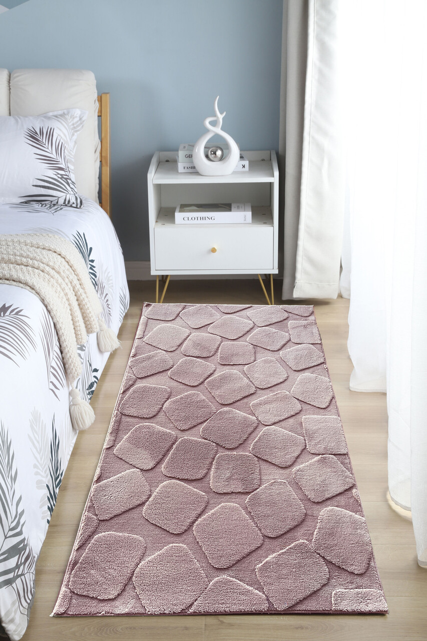 Covor 3D cu model in relief, Stone, Heinner, 80x150 cm, poliester, maro