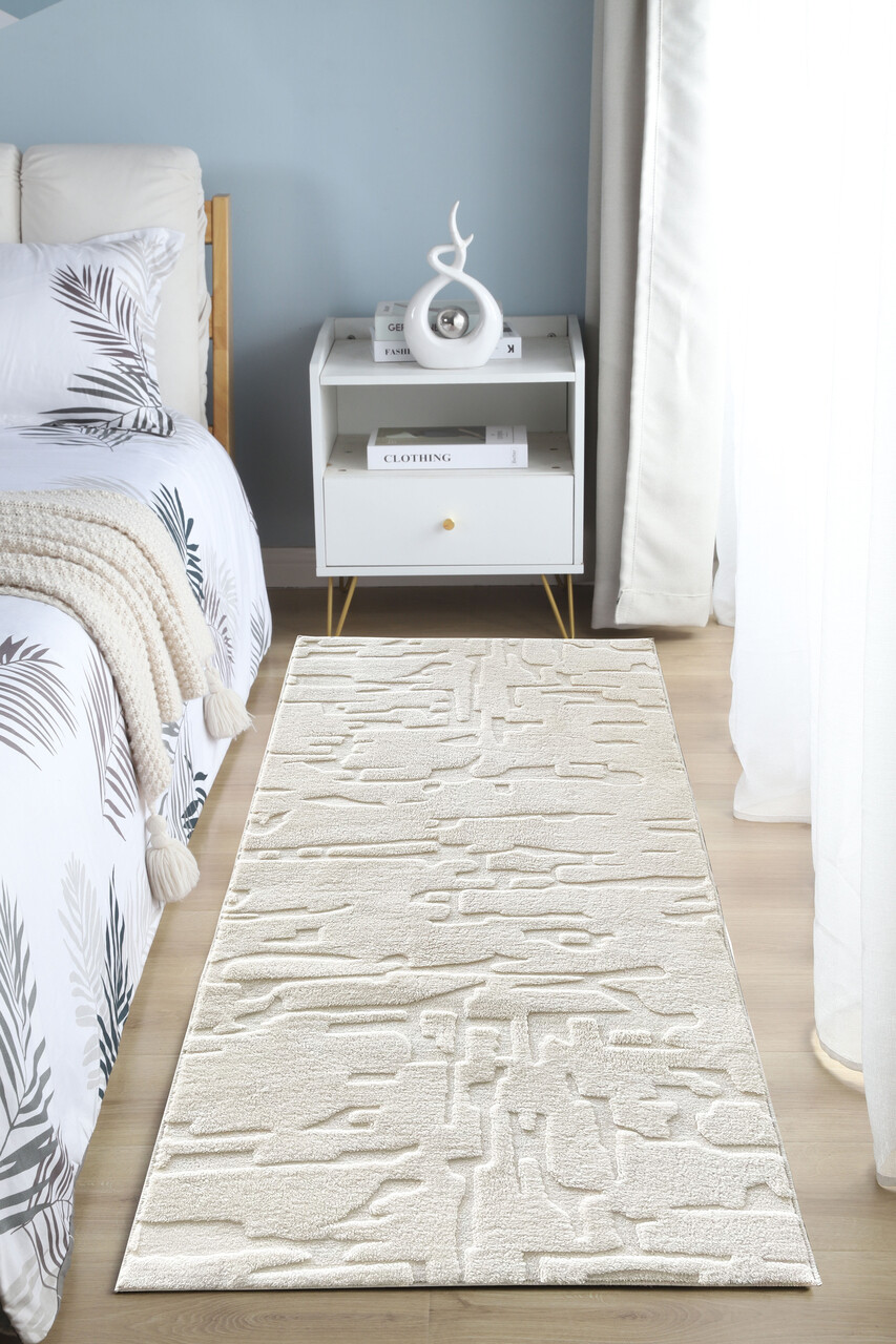 Covor 3D cu model in relief, Vista, Heinner, 80x150 cm, poliester, crem