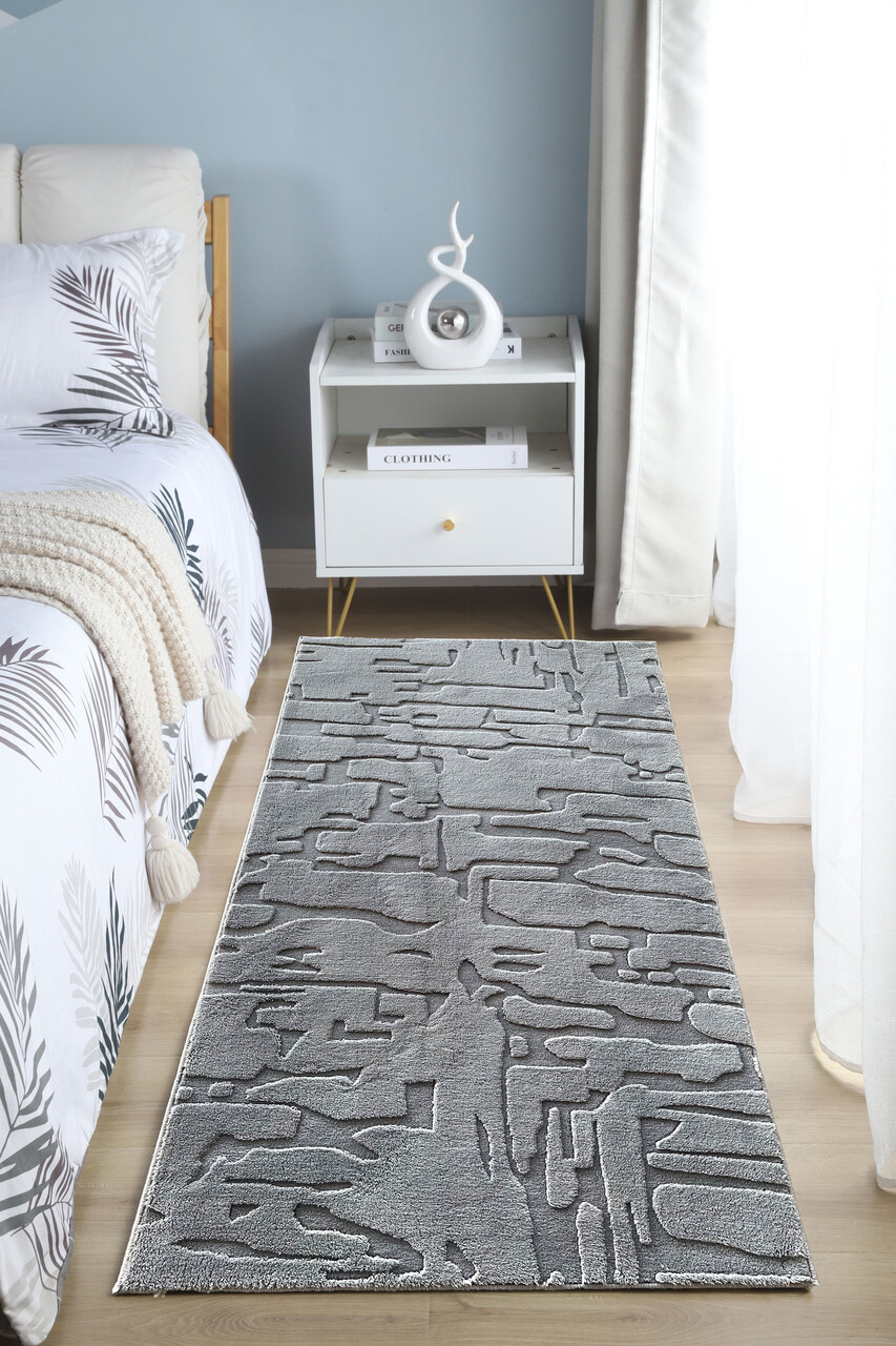 Covor 3D cu model in relief, Vista, Heinner, 80x150 cm, poliester, gri