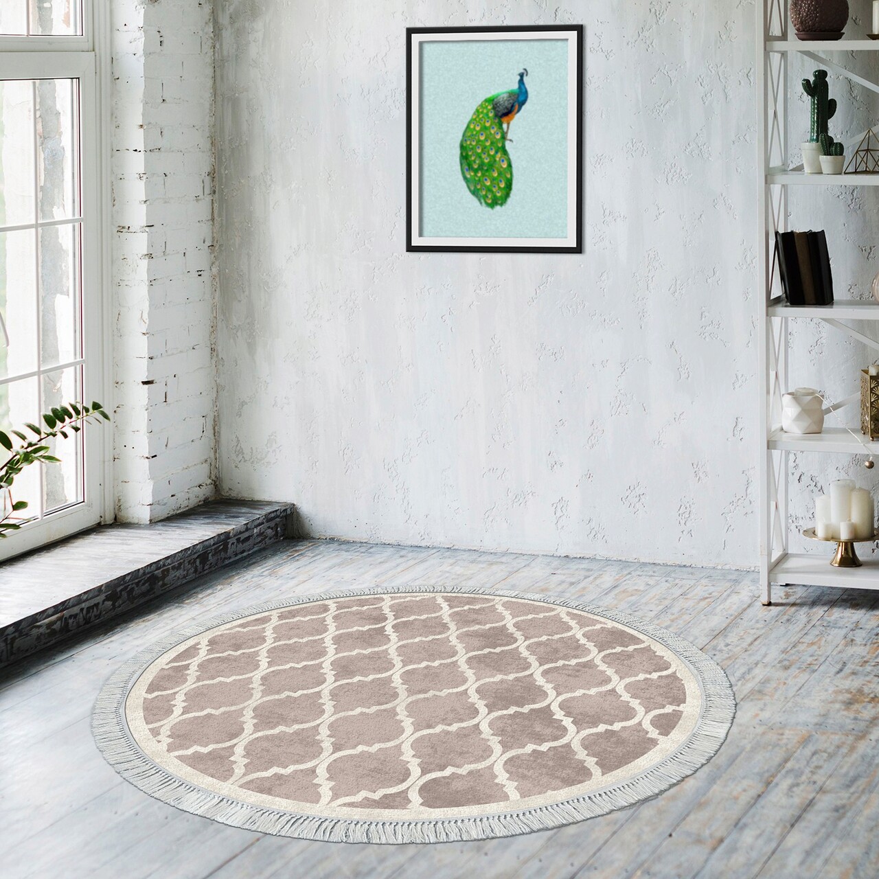 Covor, ALN400601KR17, 100x100 cm, Poliester, Crem/Maro