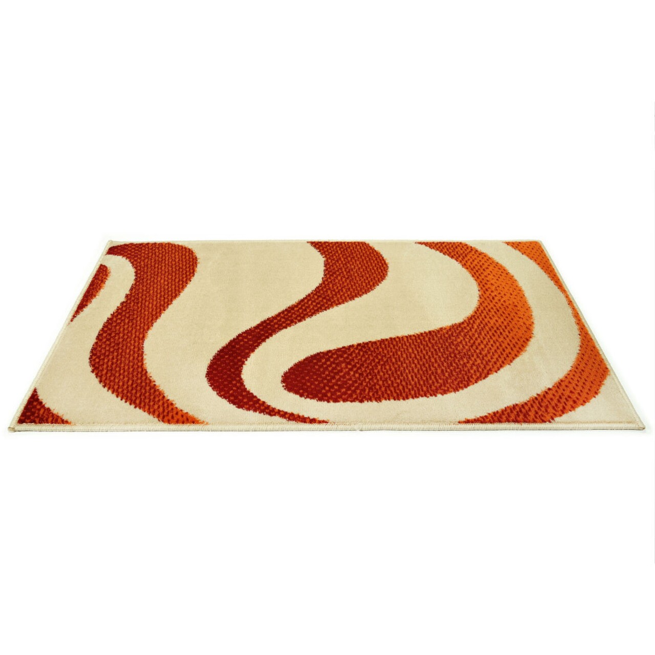 Prin forma sa dreptunghiulara, prin culorile calde de portocaliu si bej, il fac potrivit fie pentru un living fie pentru un dormitor, fiind excelent si pentru incalzirea prin pardoseala. Firele dese, lungi de 7 mm, tesatura rezistenta si placuta la atingere, fac din acesta un produs care se remarca prin durabilitate si anduranta. Designul modern, cu linii valurite in culori placute, completeaza designul interior al spatiului de locuit si intregeste golul podelei excelent.