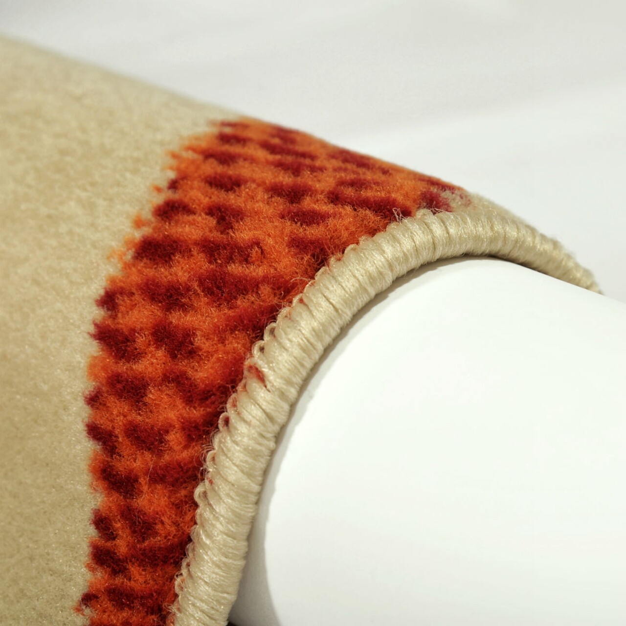 Prin forma sa dreptunghiulara, prin culorile calde de portocaliu si bej, il fac potrivit fie pentru un living fie pentru un dormitor, fiind excelent si pentru incalzirea prin pardoseala. Firele dese, lungi de 7 mm, tesatura rezistenta si placuta la atingere, fac din acesta un produs care se remarca prin durabilitate si anduranta. Designul modern, cu linii valurite in culori placute, completeaza designul interior al spatiului de locuit si intregeste golul podelei excelent.