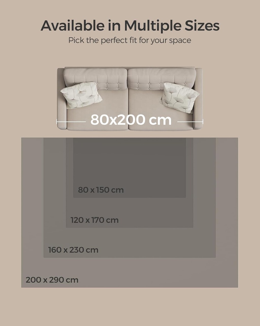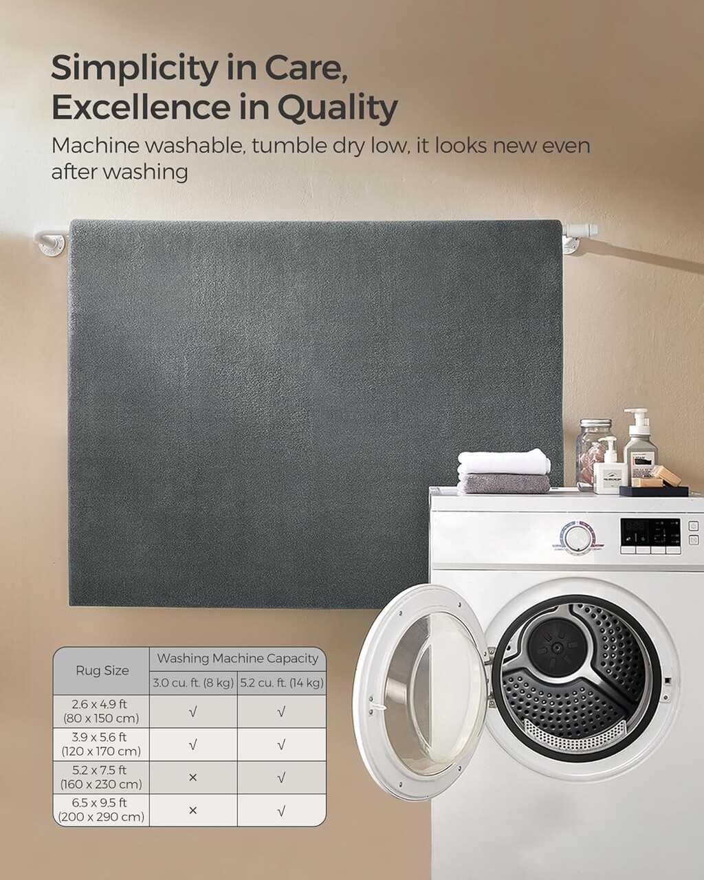 Covor antiderapant Songmics Area, 160x230 cm, lavabil la masina, poliester, gri dove