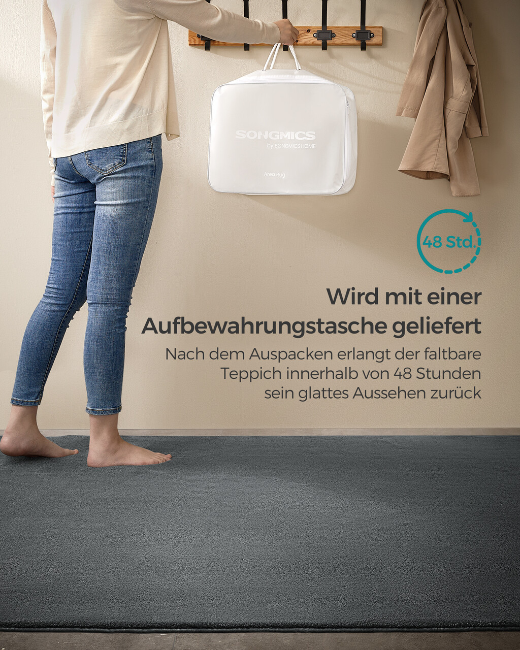 Covor antiderapant Songmics Area, 80x150 cm, lavabil la masina, poliester, gri dove