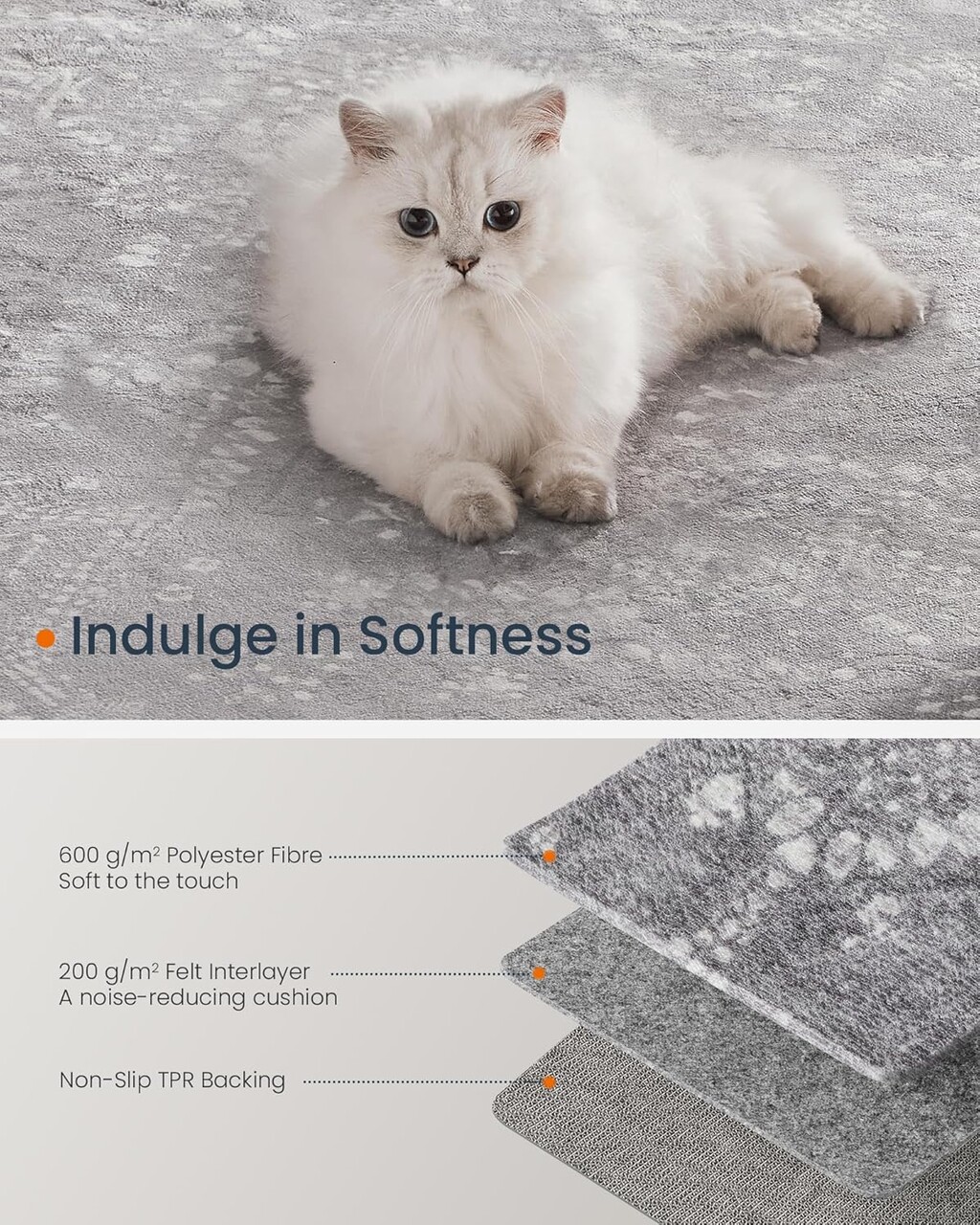 Antiderapant si versatil: Baza din TPR asigura aderenta excelenta pe diverse tipuri de pardoseli, inclusiv parchet, gresie si altele.