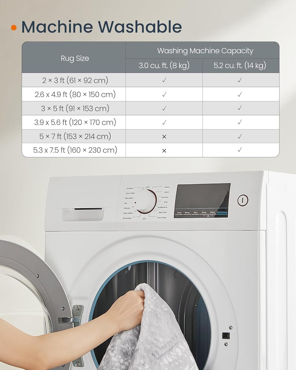 Durabil si lavabil la masina: Fabricat din materiale premium, covorul suporta utilizarea indelungata si spalari repetate, pastrandu-si textura moale si confortabila.