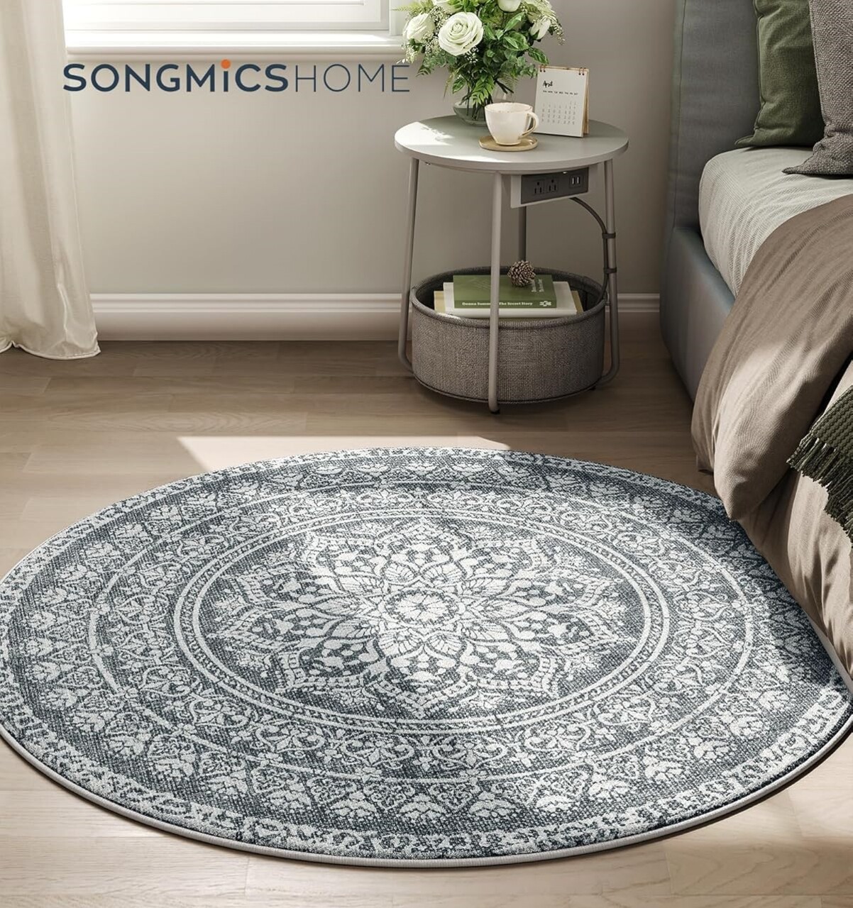 Covor antiderapant Songmics Boho, D120 cm, lavabil la masina, poliester, gri carbune