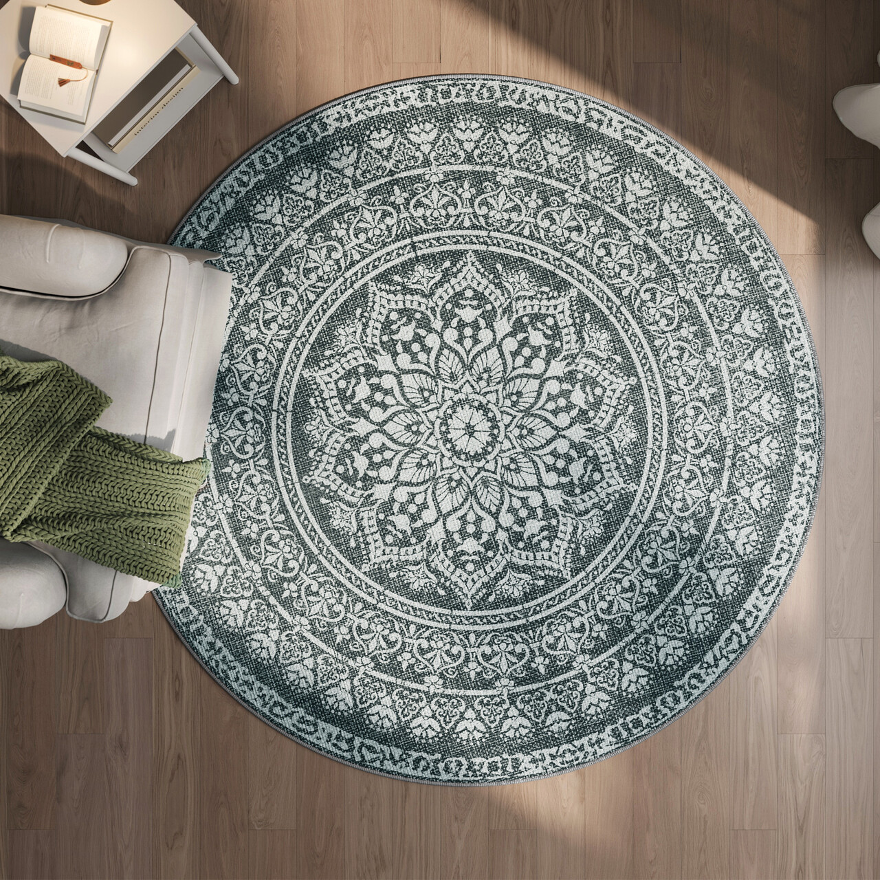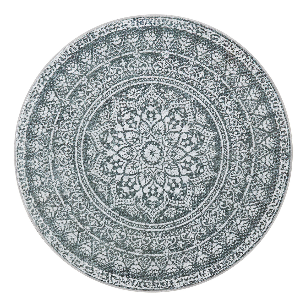 Covor antiderapant Songmics Boho, D160 cm, lavabil la masina, poliester, gri carbune