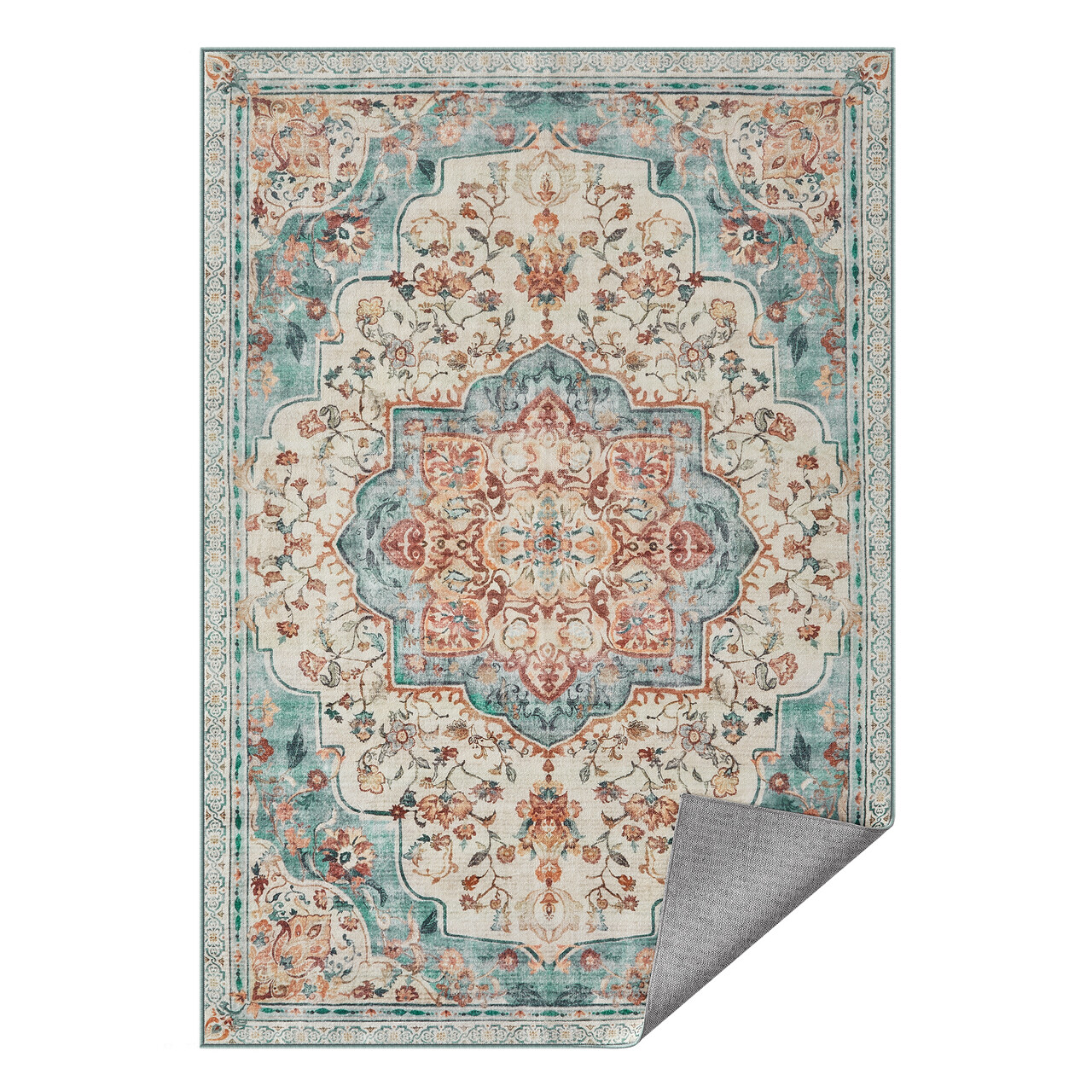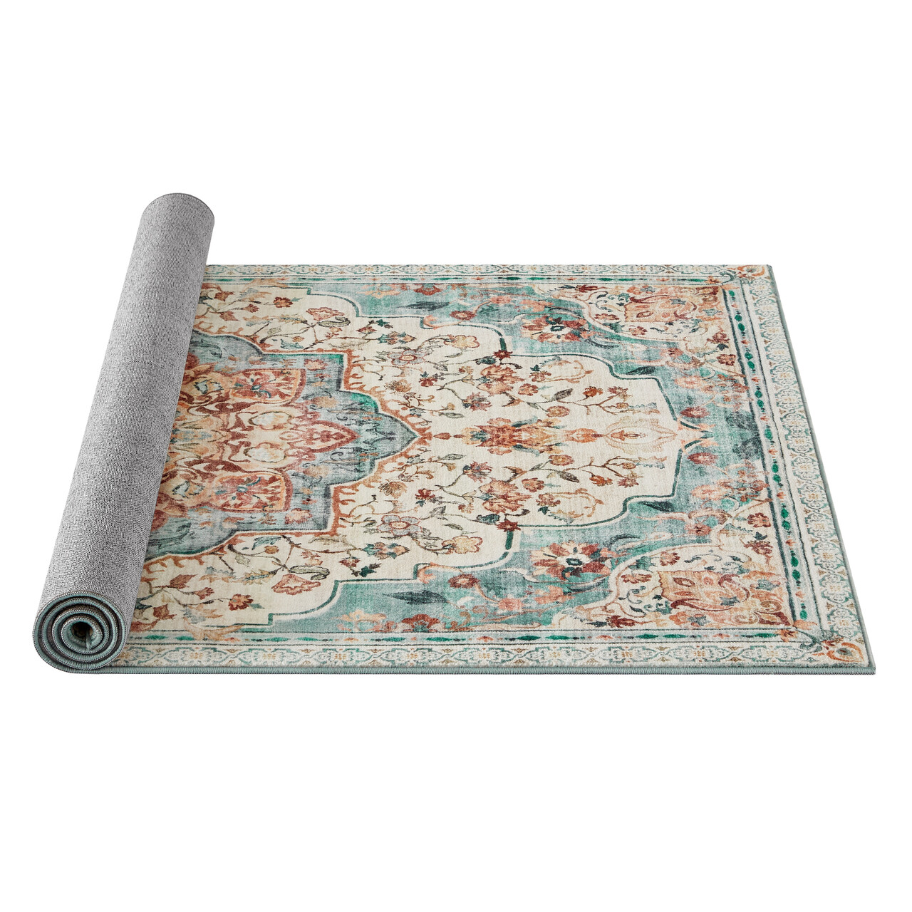 Covor antiderapant Songmics Vintage, 120x170 cm, lavabil la masina, poliester, albastru teal