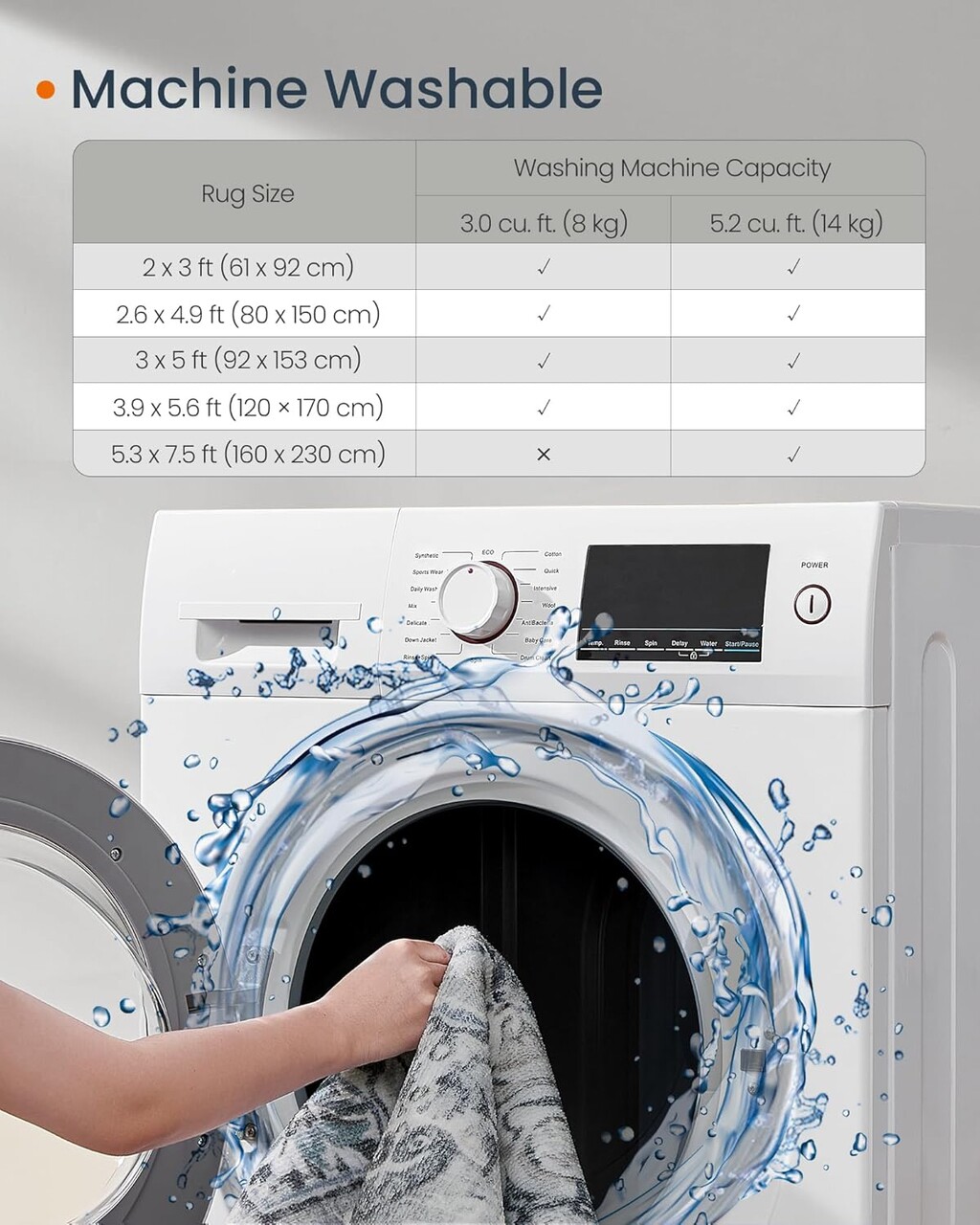 Durabil si lavabil la masina Acest covor pentru dormitor este extrem de durabil si isi pastreaza moliciunea chiar si dupa utilizare prelungita, fara a se deteriora. Chiar si dupa mai multe spalari la masina, acesta isi pastreaza calitatea.