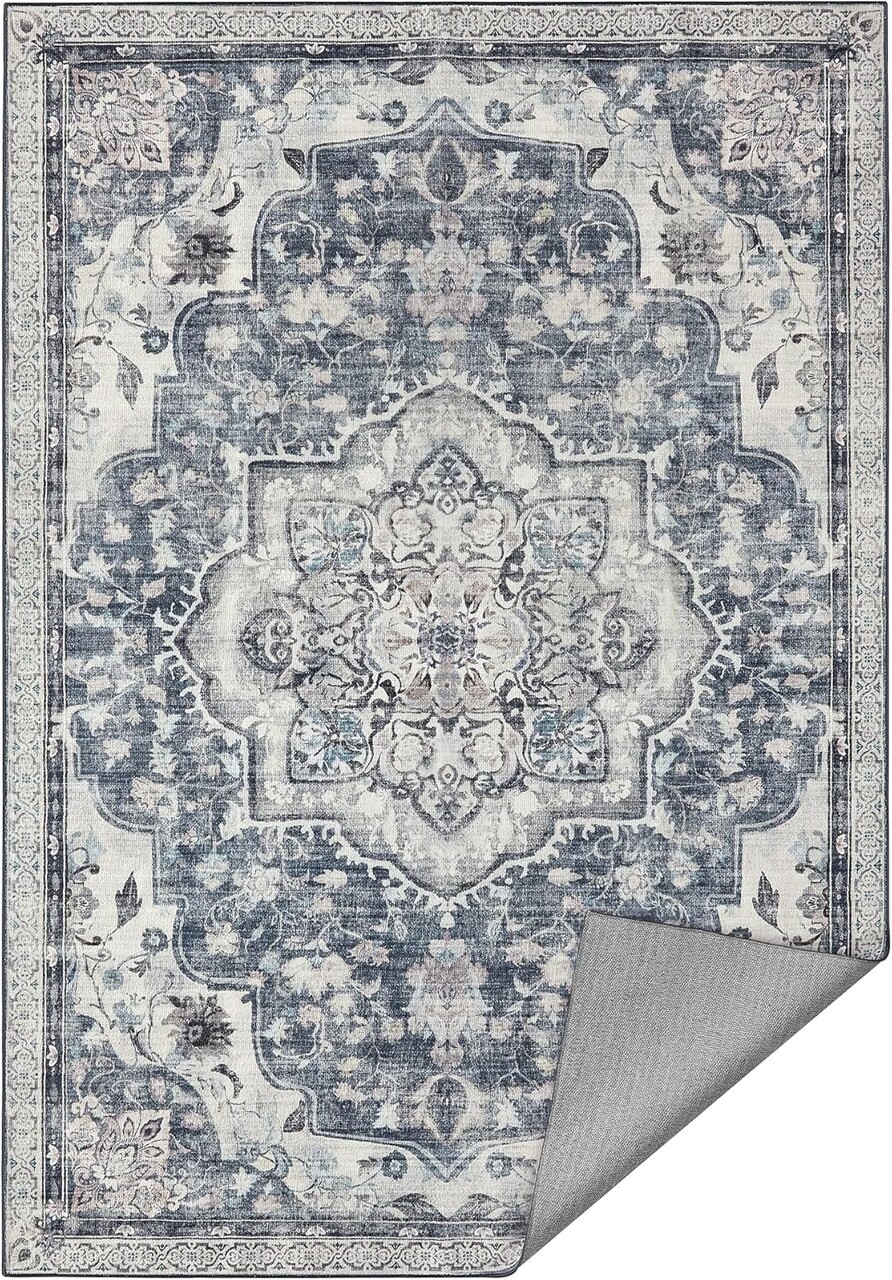Covor antiderapant Songmics Vintage, 160x230 cm, lavabil la masina, poliester, gri dove