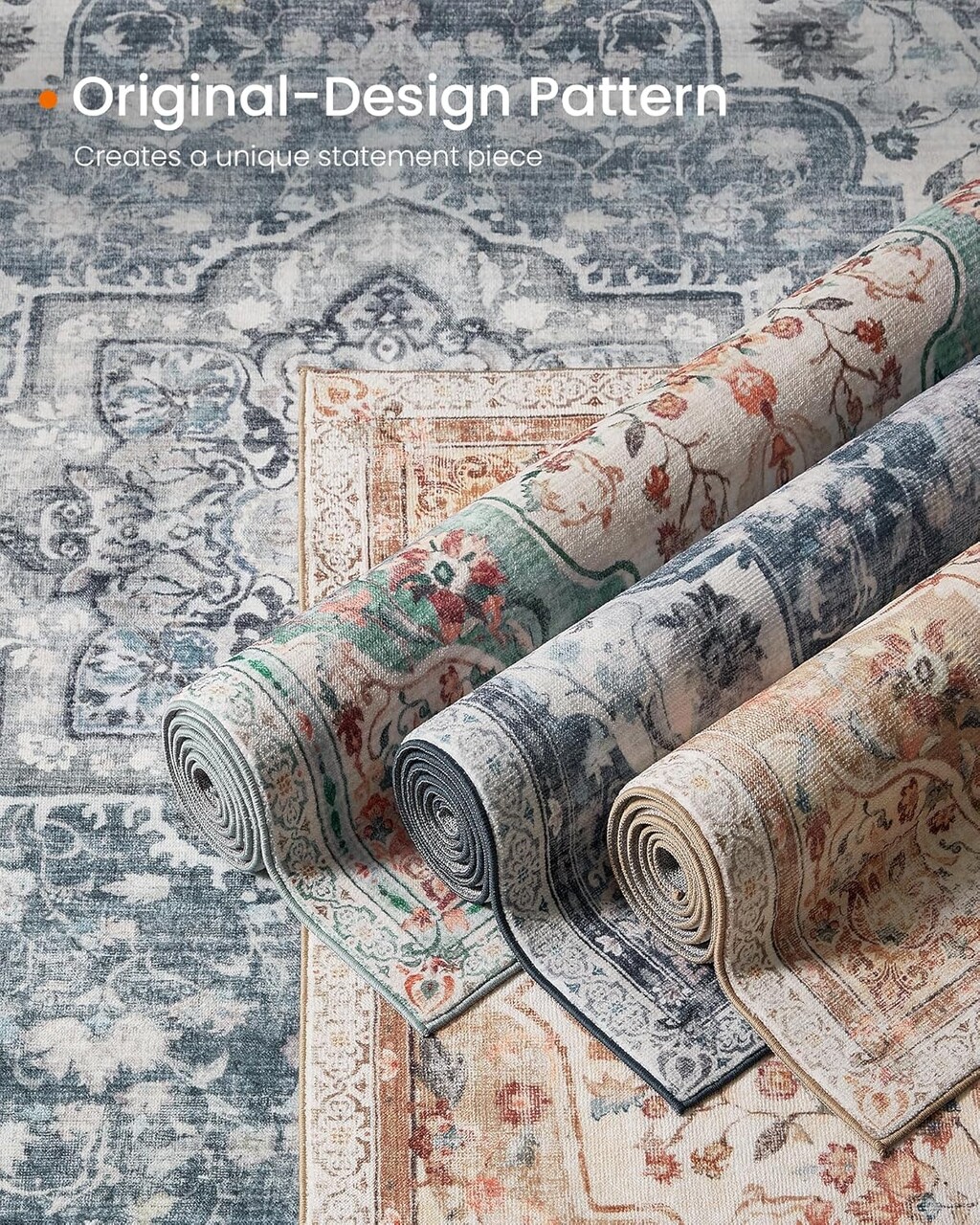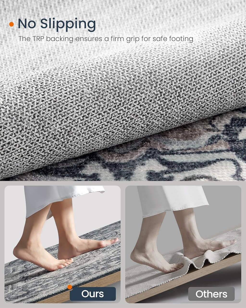 Covor antiderapant Songmics Vintage, 61x92 cm, lavabil la masina, poliester, gri dove