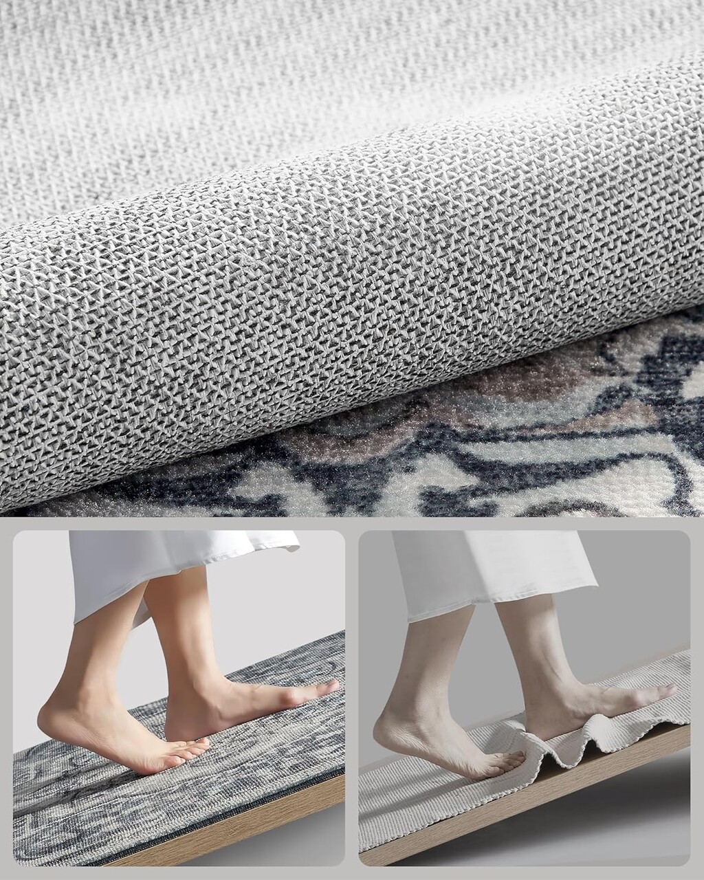 Covor antiderapant Songmics Vintage, 80x150 cm, lavabil la masina, poliester, gri dove