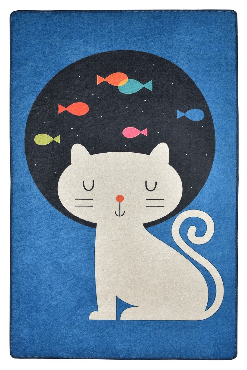 Covor, Cat and Fishes, 100x160 cm, Catifea, Multicolor
