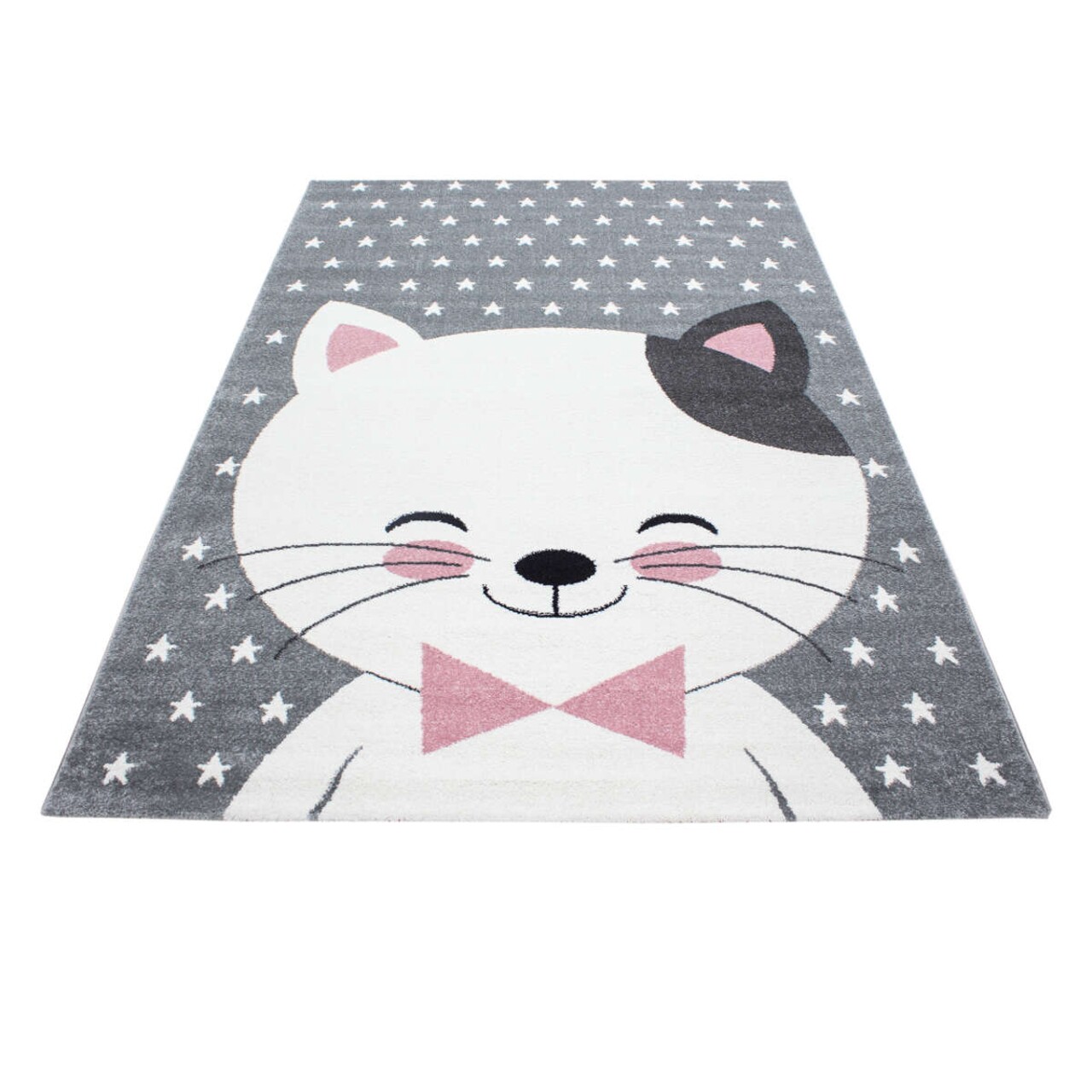 Covor copii Eugene Cat, Decorino, 80x150 cm, polipropilena, roz