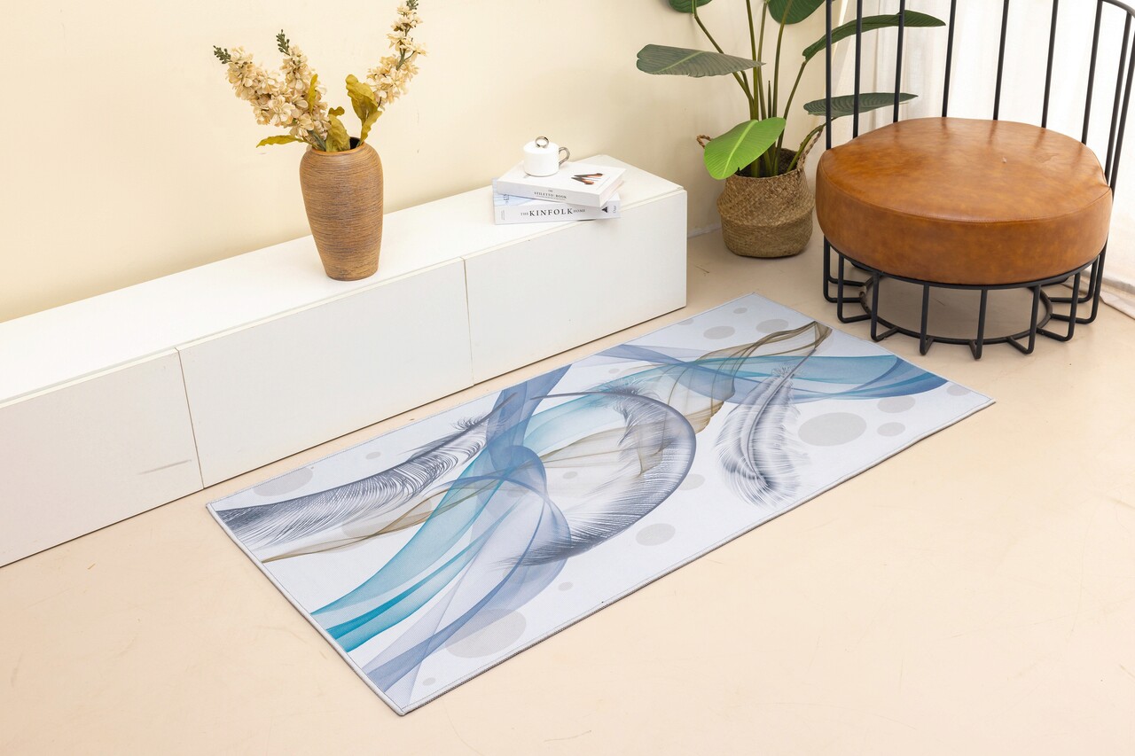 Covor cu print digital 3D, 100% poliester cu spate anti-alunecare. Inaltime fir 0.8 cm, greutate fir 0.2 kg/mp. Greutate totala: 1 kg/mp.