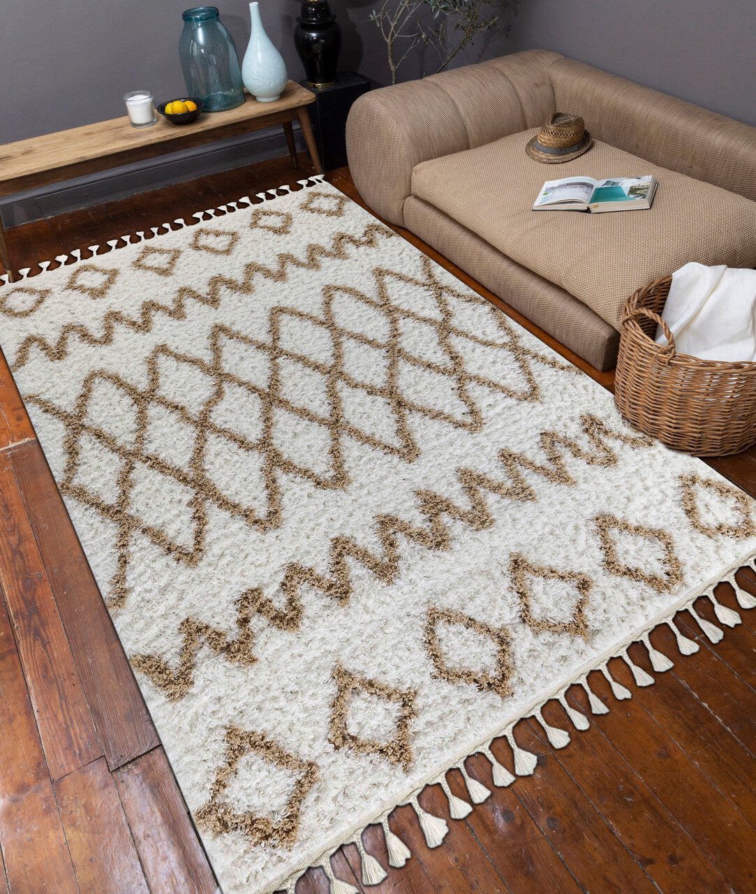 Covor de hol, 0419A , 80x150 cm, Poliester, Alb / Bej