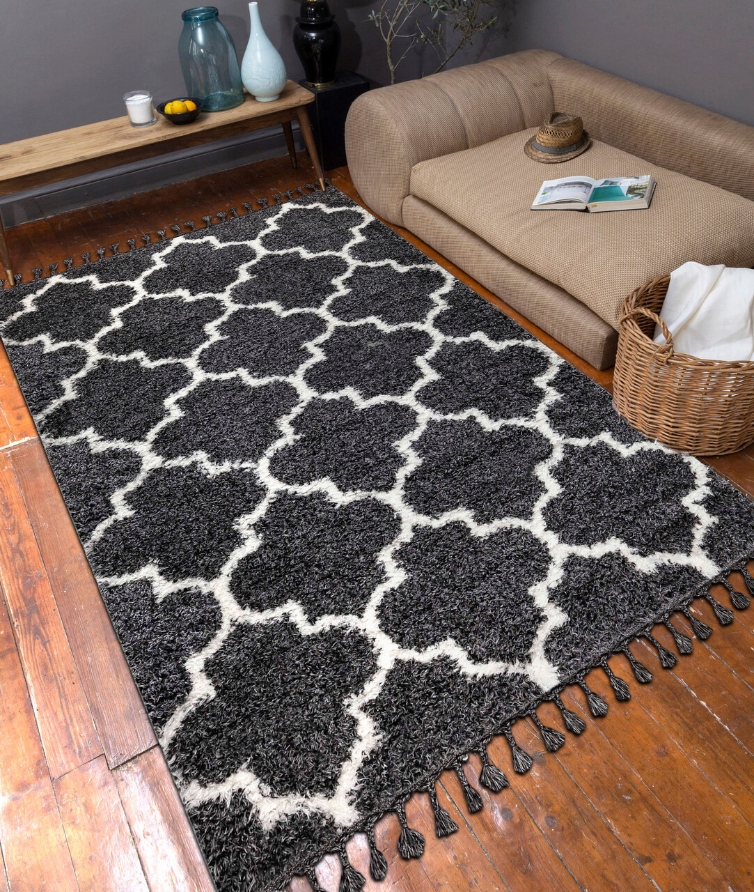 Covor de hol, 1573C , 80x150 cm, Poliester, Antracit/Alb