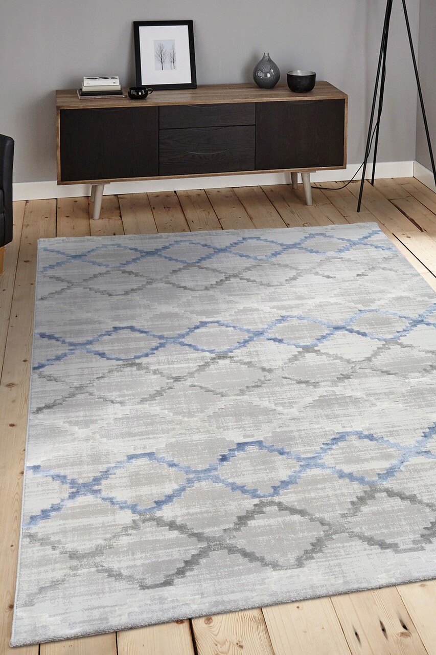 Covor de hol, Halley 4477B, 80x300 cm, Polipropilena, Albastru