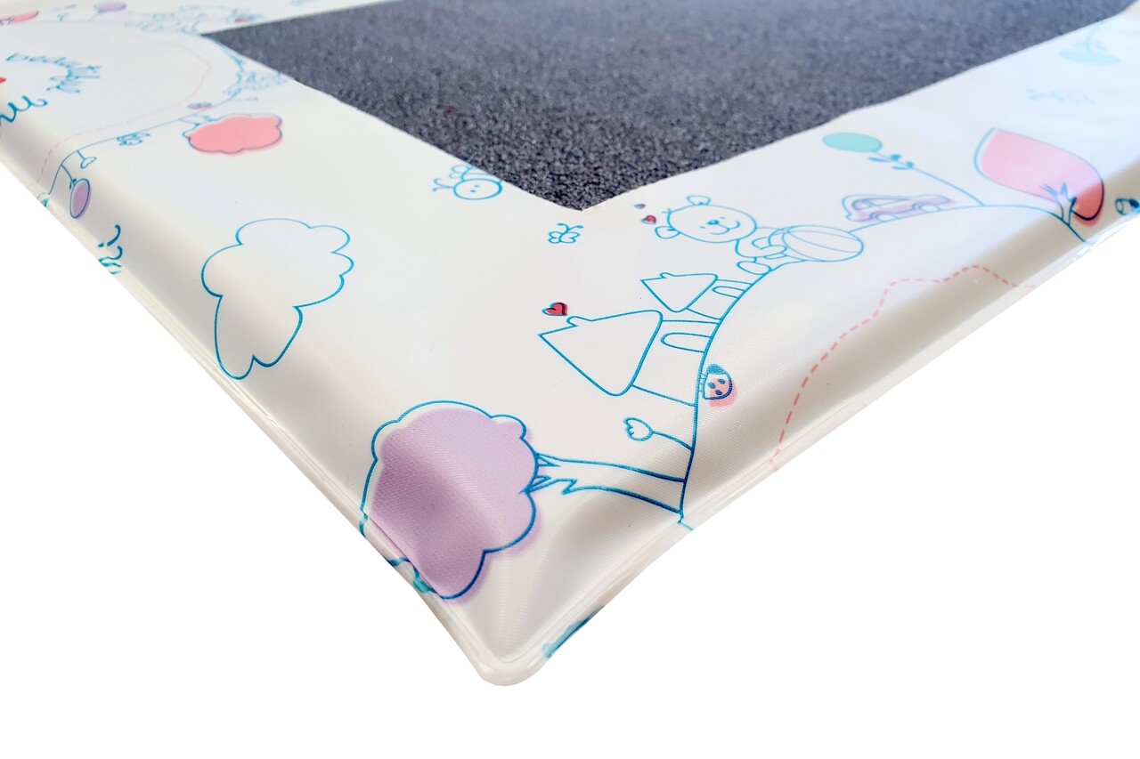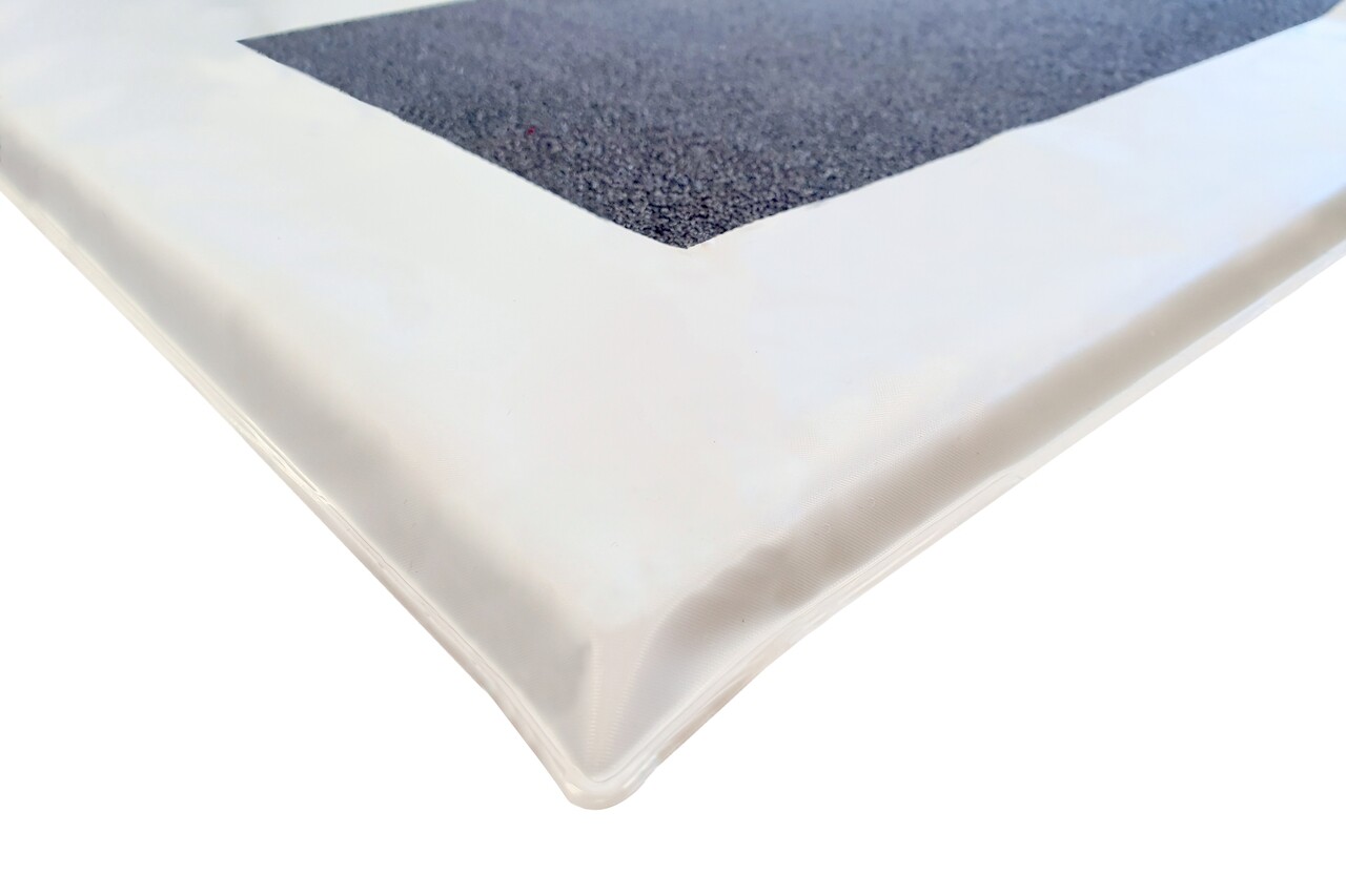 Covorul este confectionat din PVC la exterior (lipire cu inalta frecventa ) si spuma poliuretanica la interior.