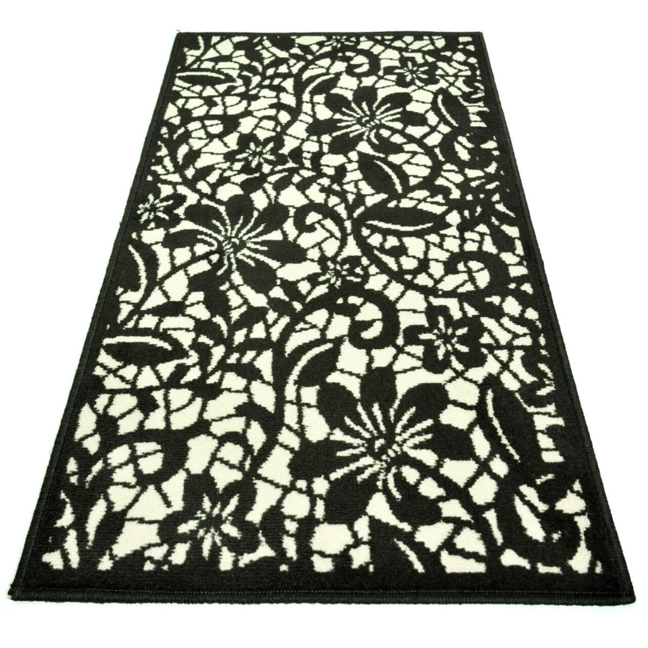 Minunatul covor in alb si negru cu modelele florale prezente in chenarul negru de pe margine va crea o atmosfera superba in locuinta in care va fi amplasat. Fie ca alegeti sa il amplasati intr-un decor modern, minimalist, fie intr-unul clasic, nu veti regreta alegerea facuta deoarece creeaza un impact vizual minunat.