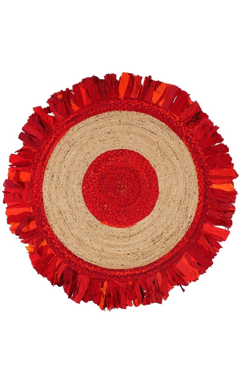 Covor Eko lucrat manual, MX 05 - Red Q, 50% iuta, 50% bumbac, 120 cm Ø