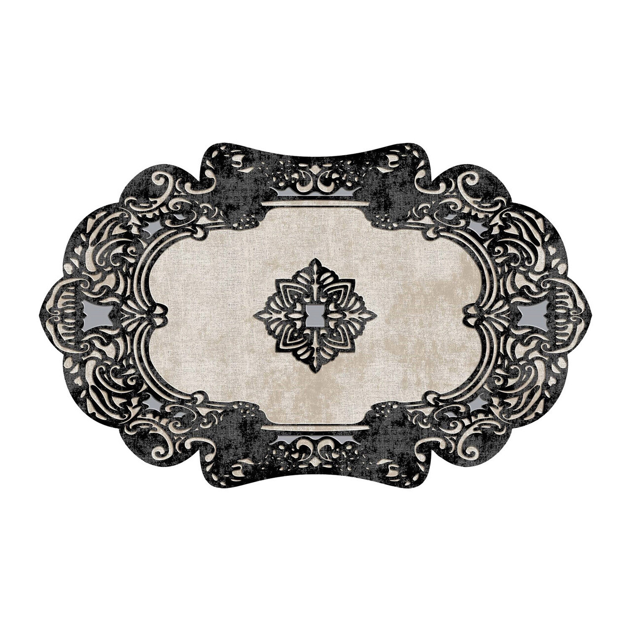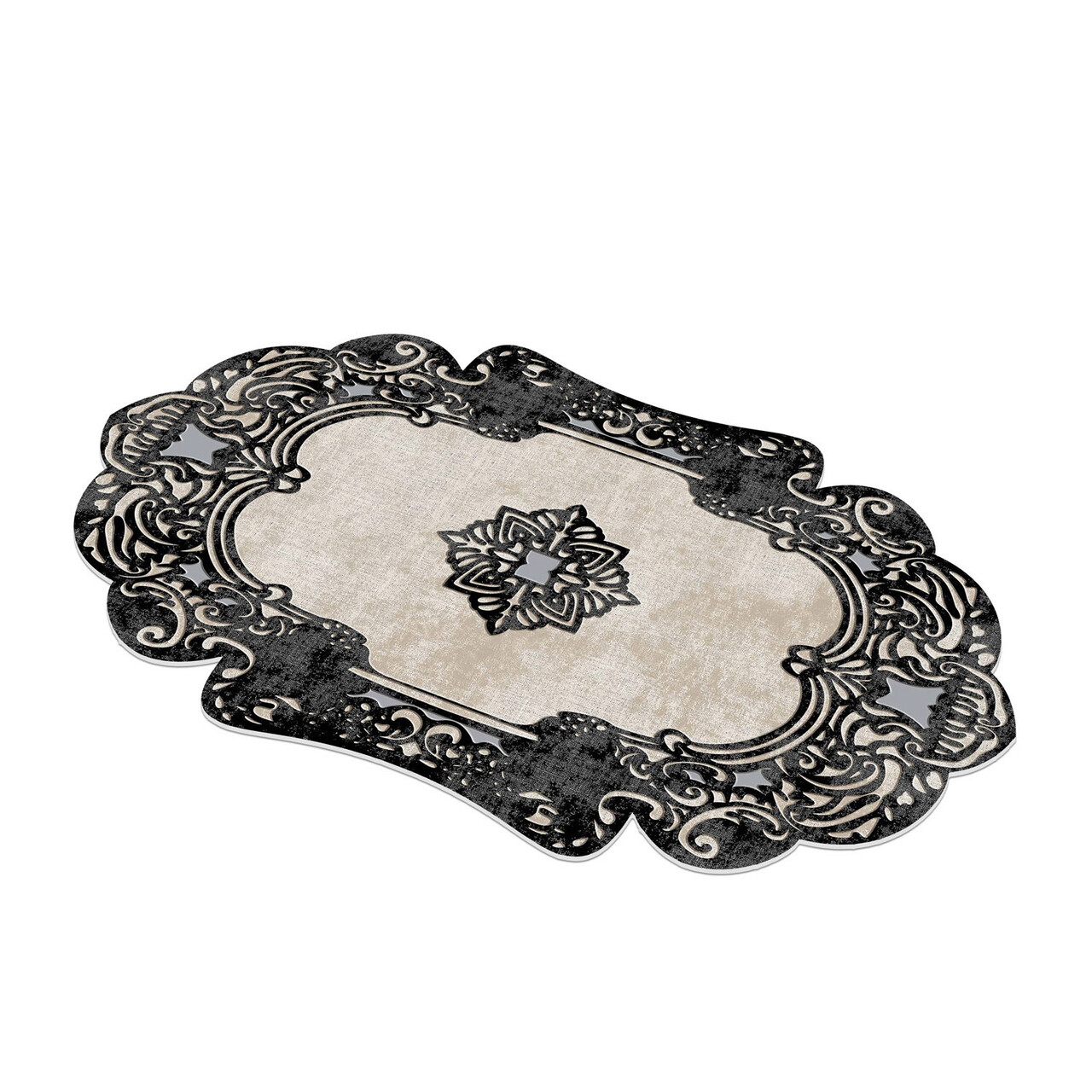 Covor, Eugene V3, 80x150 cm, Poliester, Alb/Negru