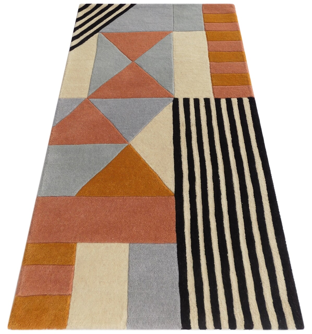 Covor Geometry Bedora, 200x300 cm, 100% lana, multicolor, finisat manual