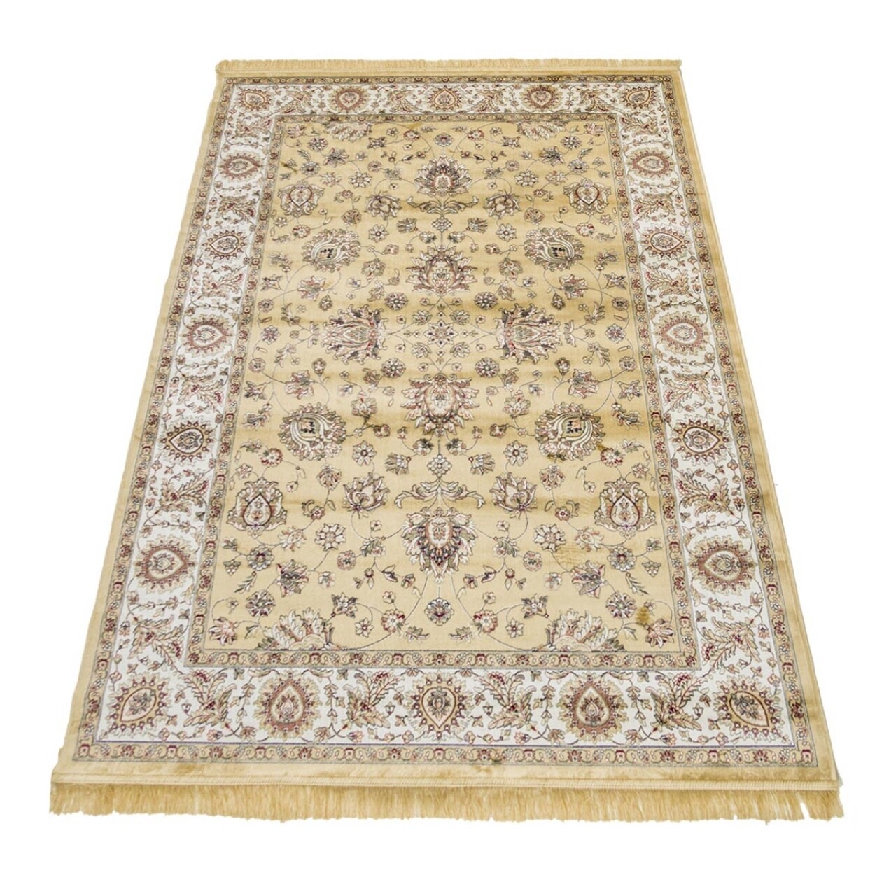 Covorul Gold Rubine Heriz aduce un suflu elegant camerei si un strop de culoare. Cu un aspect clasic, oriental, prevazut cu franjuri, covorul va imbraca frumos spatiul. Acesta se face remarcat prin calitatea materialelor si rezistenta sa. Culorile isi vor pastra intensitatea chiar si dupa spalari repetate si o utilizare intensa.