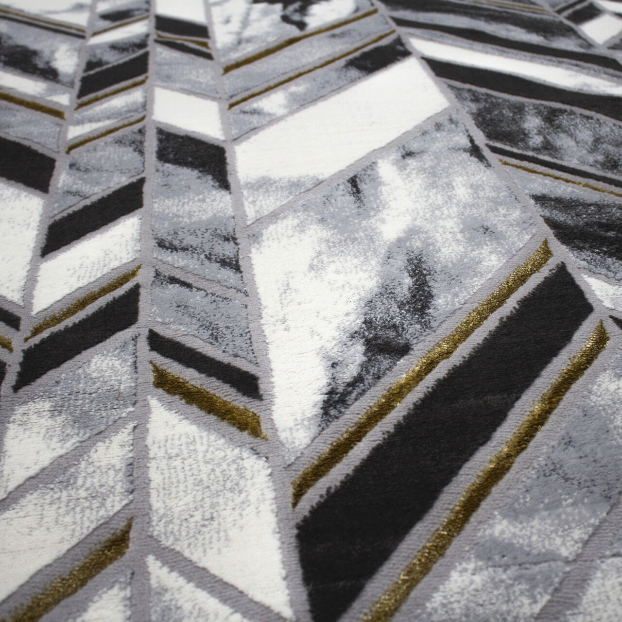 Covor, HE257 , 150x230 cm, Polipropilena, Alb / Negru / Gri / Auriu