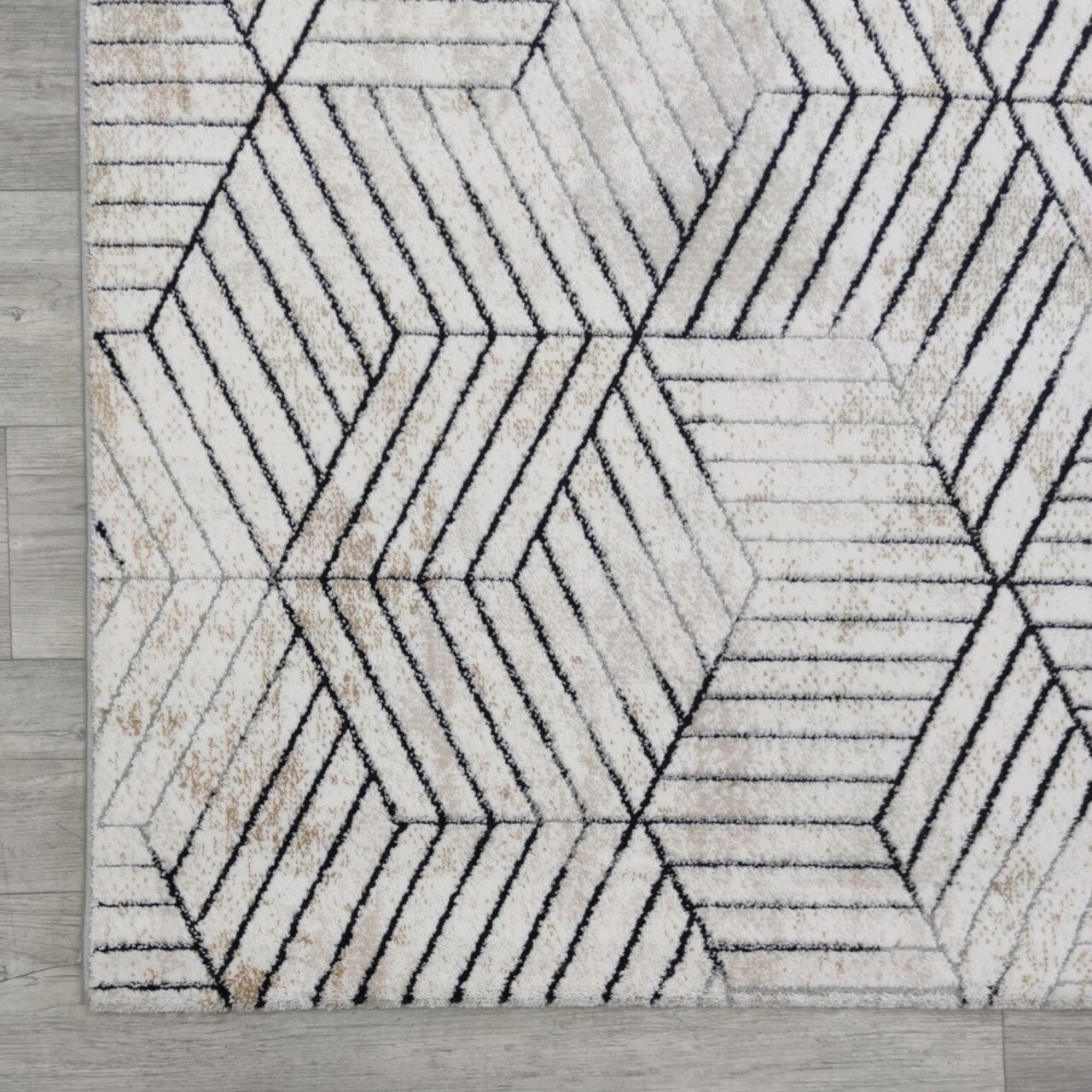 Covor, Hera 4587A, 100x300 cm, Acril, Gri/Negru