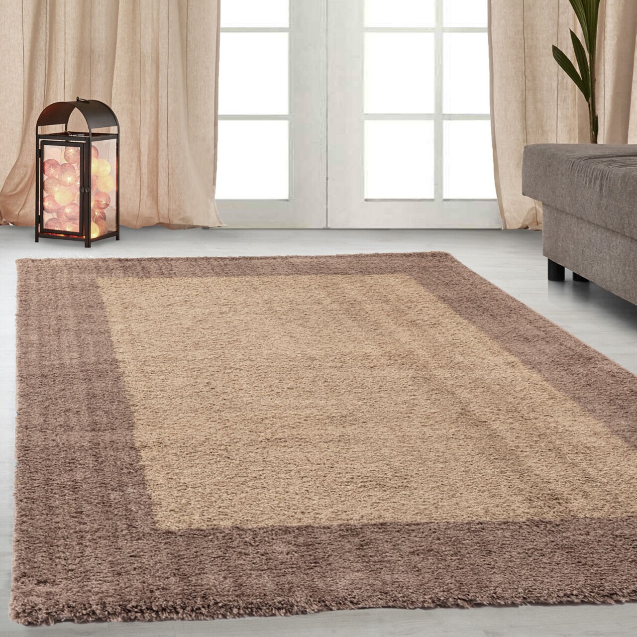 Covor Hugh Border, Decorino, 67x120 cm, polipropilena, maro