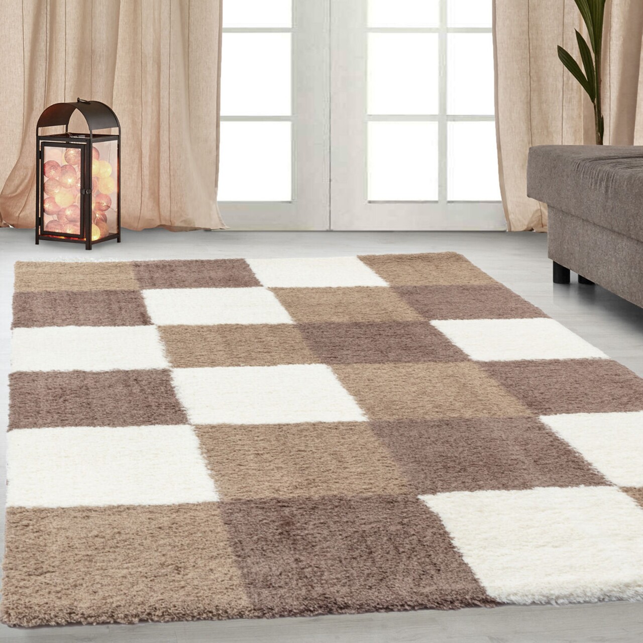Covor Hugh Square, Decorino, 100x150 cm, polipropilena, alb/maro